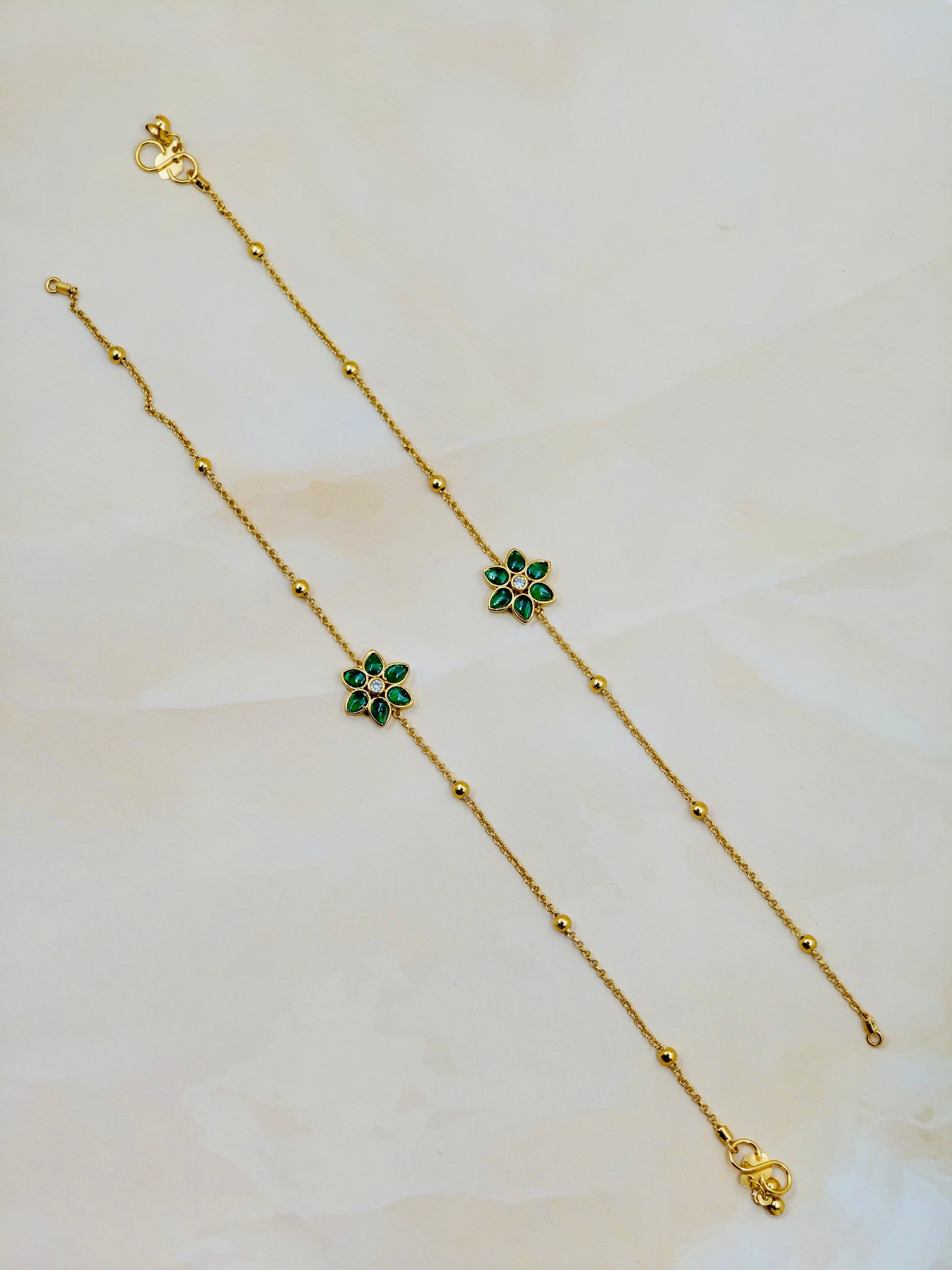 Elevate your style with the Premium Floral Anklet in Green, expertly crafted to add a delicate touch of nature-inspired elegance to your ensemble. This anklet features finely detailed floral motifs in a vibrant green hue, offering a unique blend of sophistication and freshness. Perfect for enhancing both casual and festive looks, it provides a comfortable fit while making a subtle yet striking statement. Ideal for those who appreciate refined craftsmanship and timeless design.