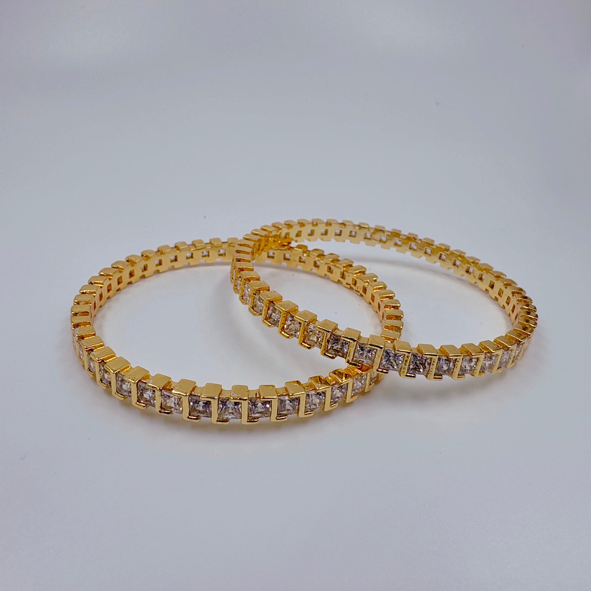 These elegant Sparkling Stone Bangles are adorned with dazzling white stones for a touch of glamour. Made from high-quality materials, they are perfect for adding a sophisticated touch to any outfit. Enhance your style and make a statement with these sparkling bangles.
