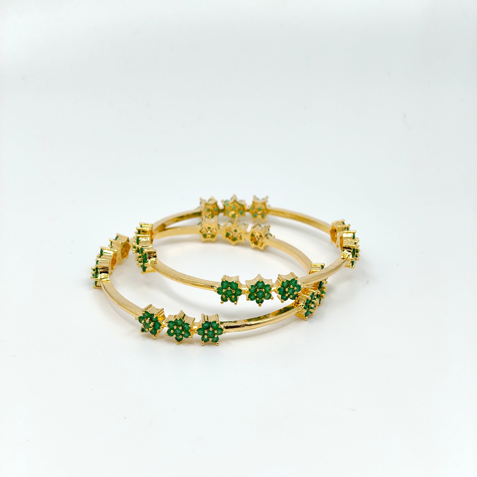 This Beautiful A D Stone Bangle in Green is a dazzling addition to any outfit. Crafted with precision and featuring elegant A D stones, this bangle adds a touch of glamour to any occasion. Its stunning green color makes it the perfect statement piece, sure to impress with its beauty and sophistication.