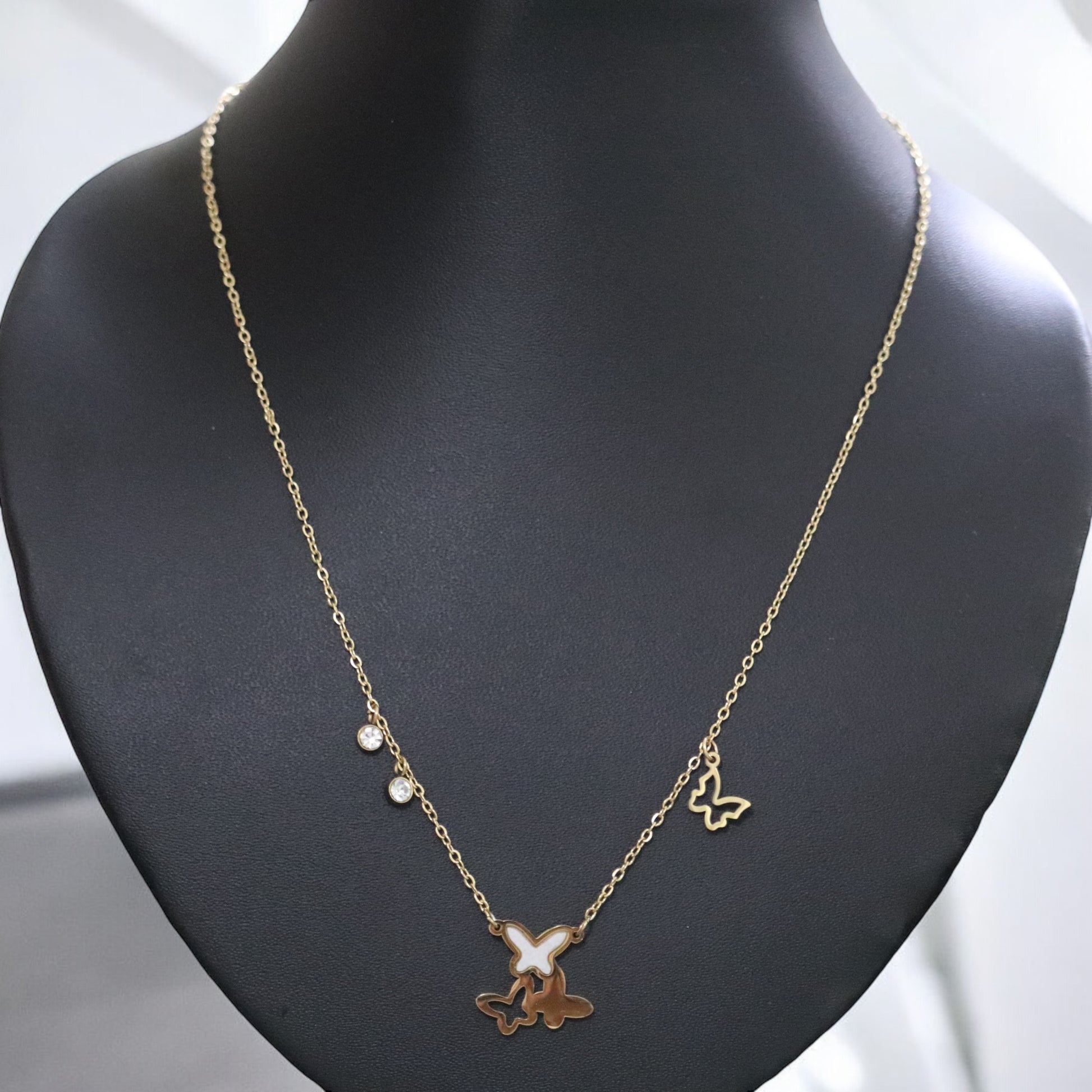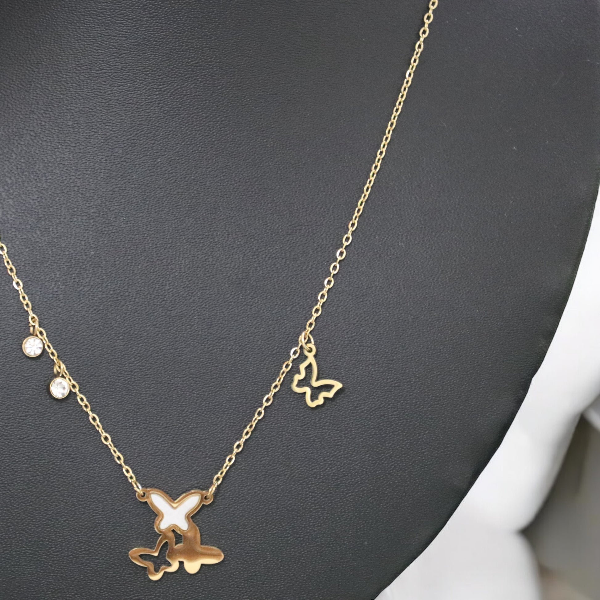 This unique butterfly pendant chain is crafted with expert precision and the finest materials. The intricate design showcases the beauty and grace of butterflies, while the durable chain offers long-lasting wear. Perfect for adding a touch of elegance and whimsy to any outfit.