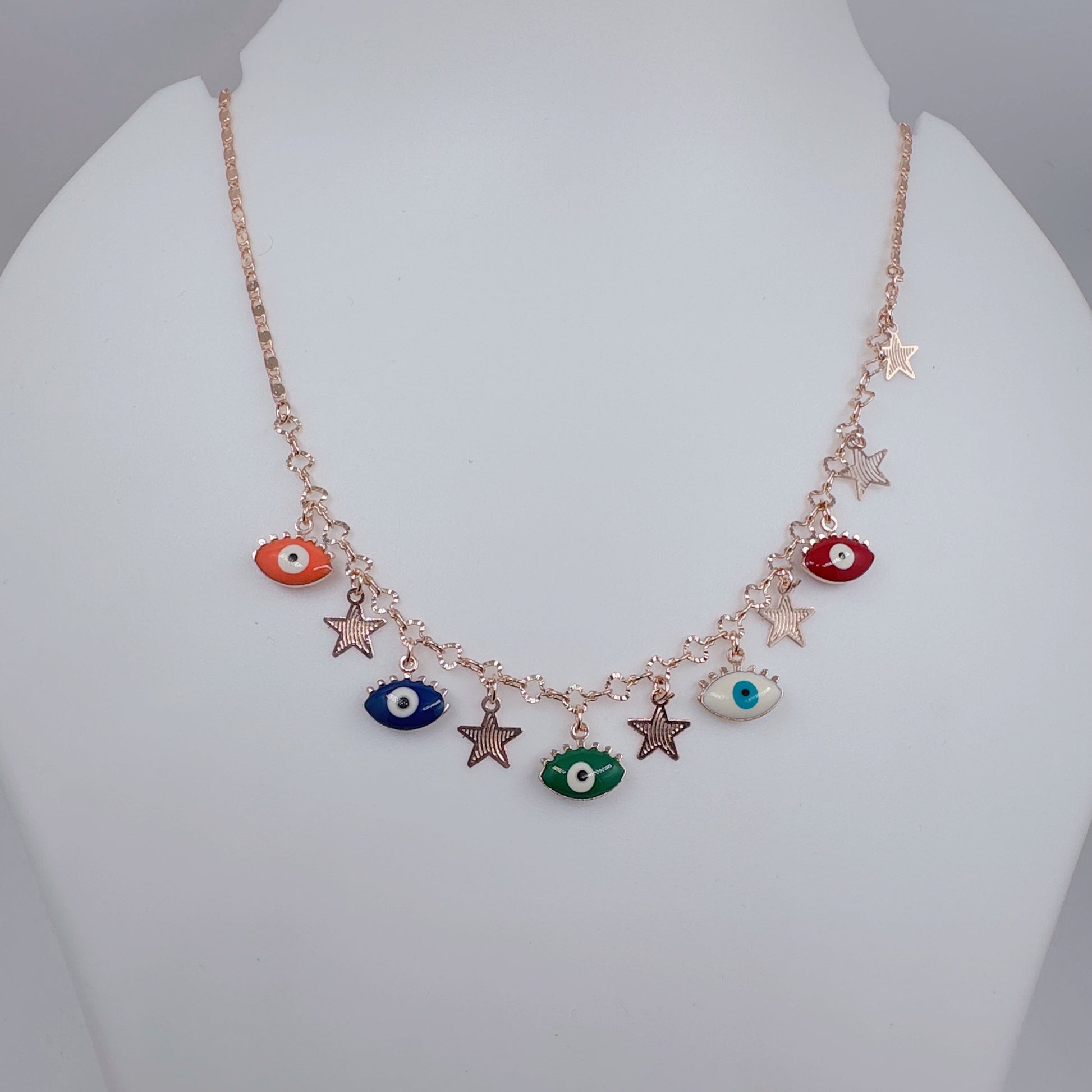 This Multicolor Evil Eye Pendant Hanging Chain is a stylish and protective accessory that will add a touch of uniqueness to any outfit. Made with colorful evil eye pendants, this chain is believed to ward off negative energy and bring good luck. Perfect for those seeking a blend of fashion and positive vibes.
