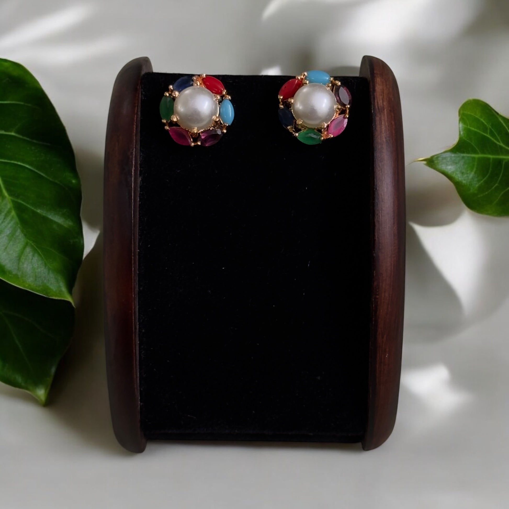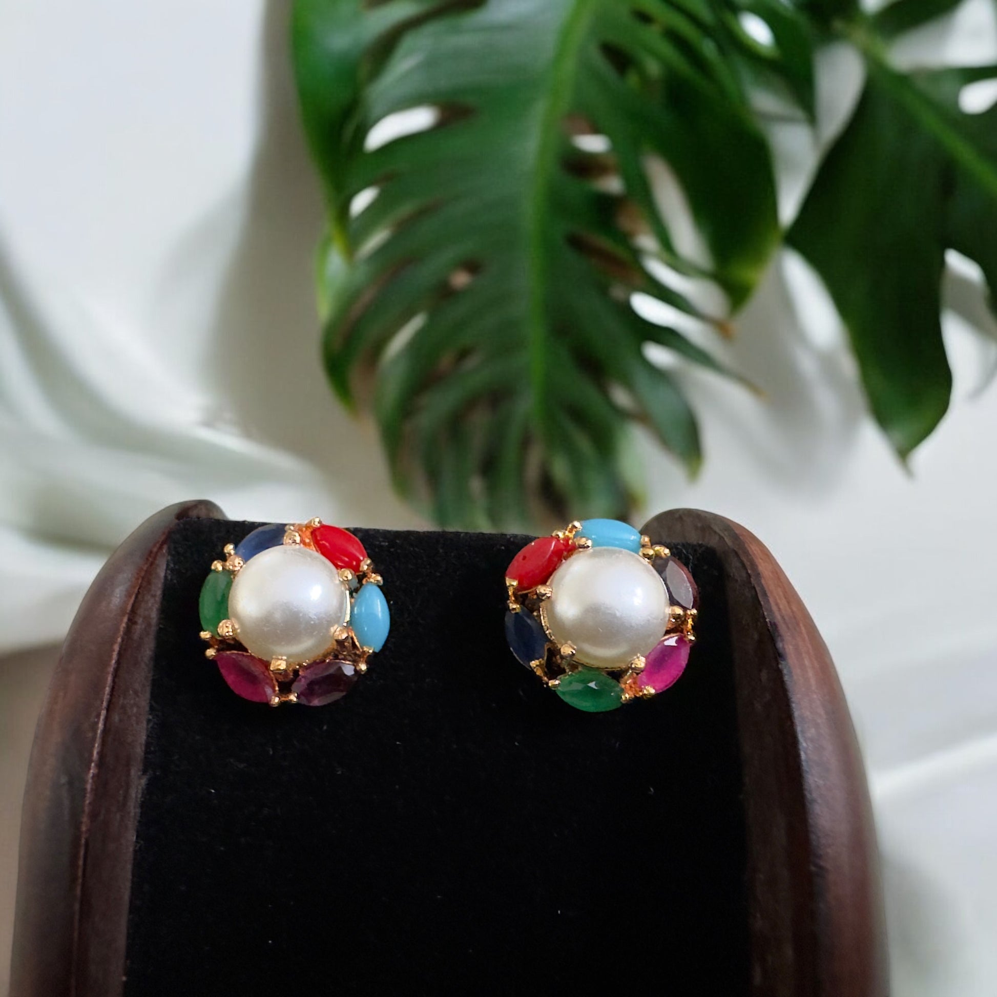 Discover the timeless beauty and versatility of our Multi-stones Stud with Pearl. The round shape and unique combination of stones make it a classic accessory for any occasion. Elevate your style with the elegance and sophistication of this stunning piece.