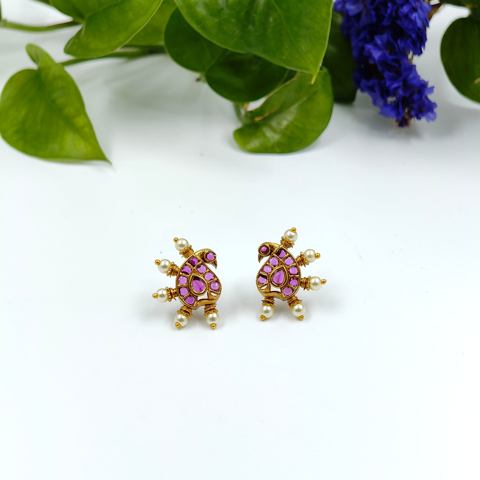 These Traditional Kemp Stone & Pearl Peacock Ear Studs are expertly crafted with authentic kemp stones and pearls, adding a touch of tradition and elegance to any outfit. The intricate peacock design showcases the attention to detail and expert craftsmanship. Perfect for formal occasions or adding a touch of sophistication to everyday wear.