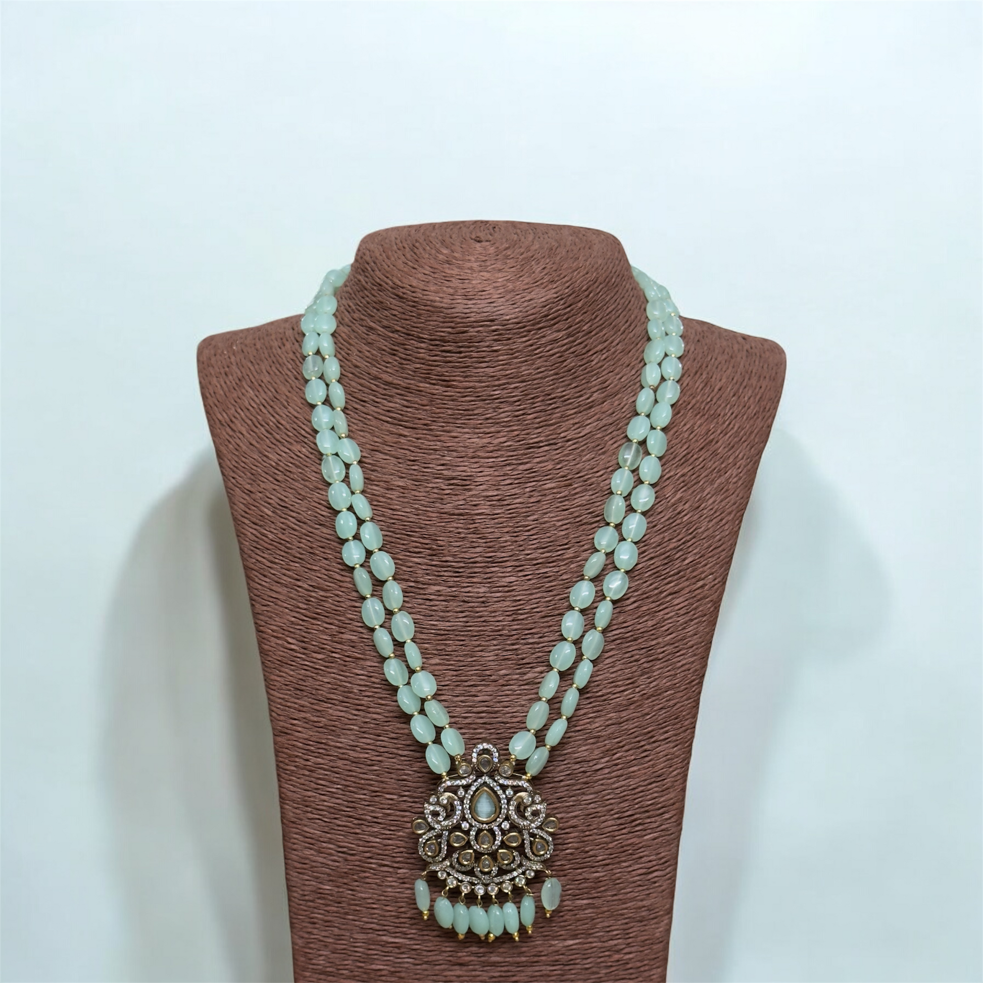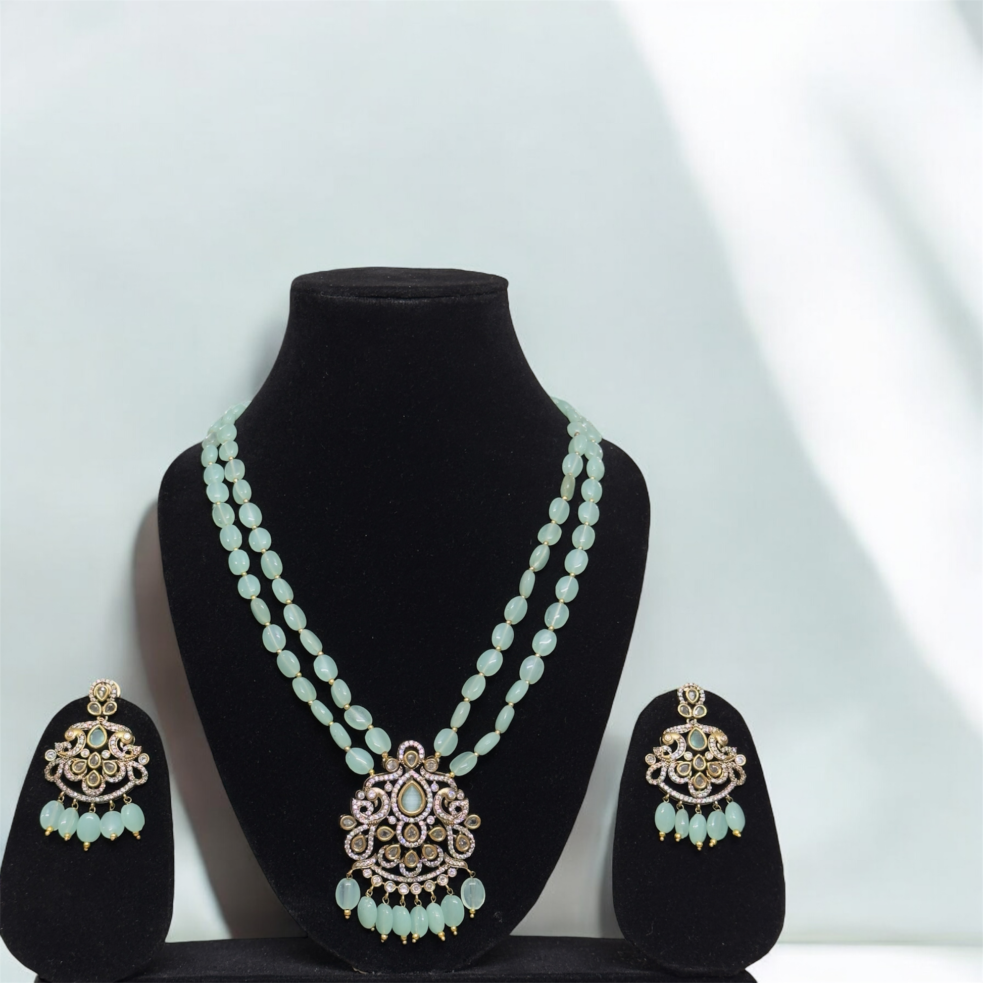 Victorian Pale Green Beaded Haaram & Earrings Set