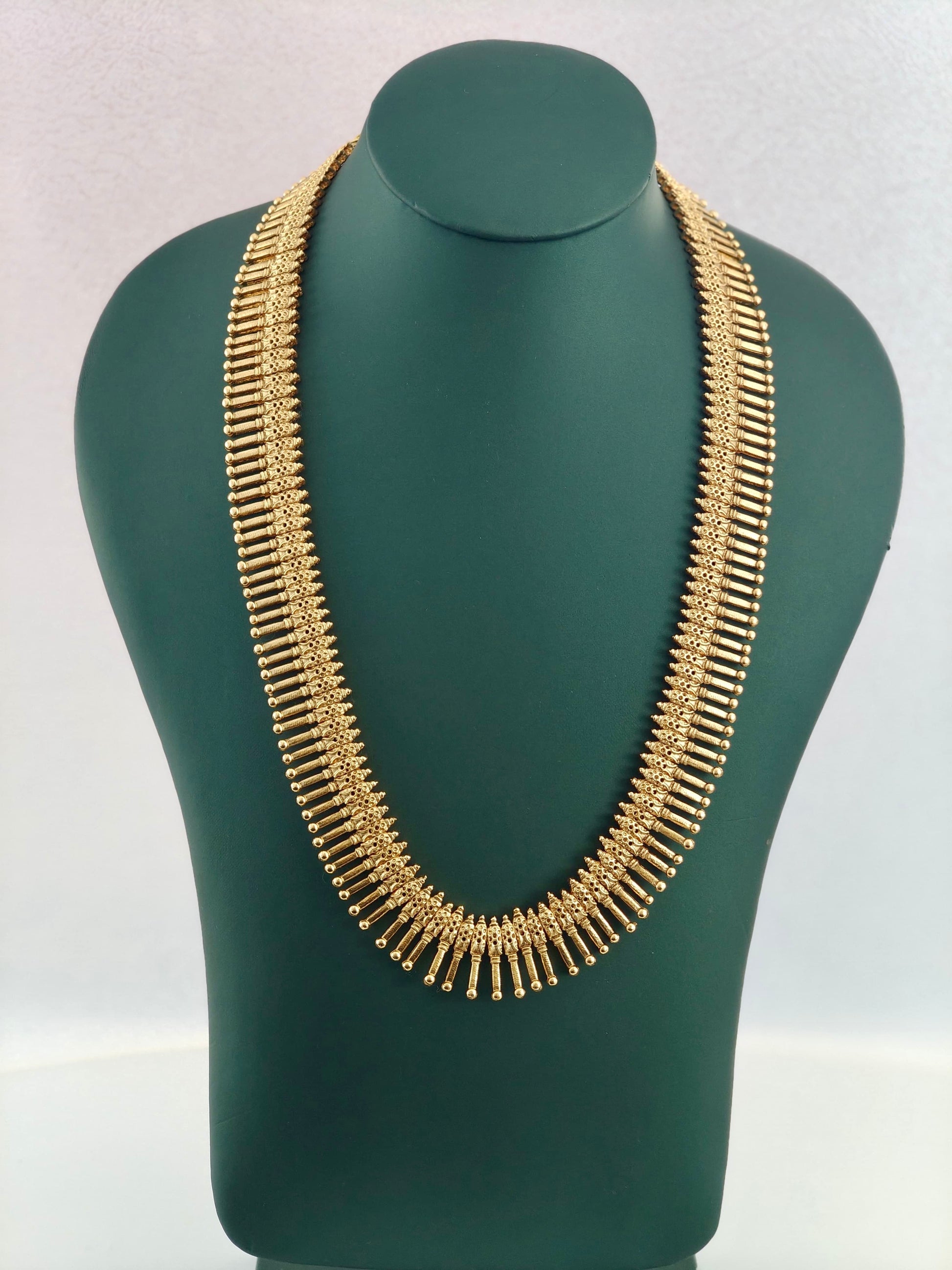 # Traditional Classic Haaram Embrace timeless elegance with this Traditional Classic Haaram, a quintessential piece of Indian jewelry heritage. Crafted with meticulous attention to detail, this haaram features the refined aesthetics of classical design, making it an ideal choice for weddings, festivals, and special occasions. The piece combines authentic craftsmanship with enduring appeal, ensuring it remains a cherished addition to your jewelry collection for generations. Perfect for those who appreciate the sophistication of traditional adornments and seek to honor cultural artistry through wearable beauty.