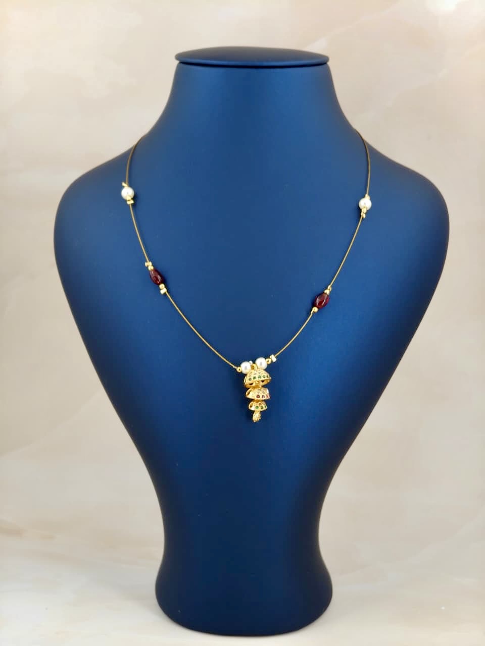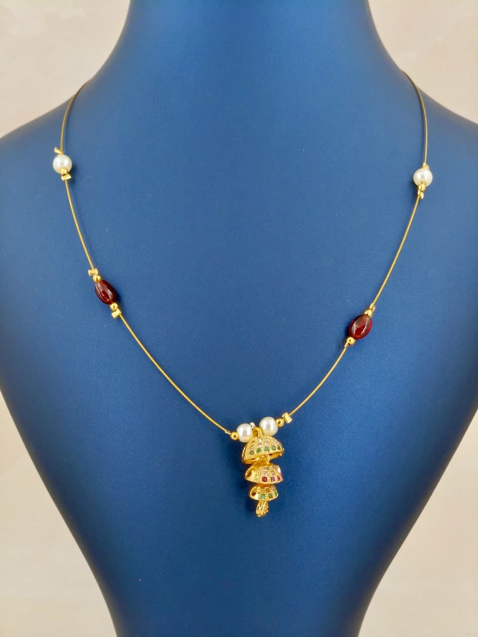 Elevate your style with this exquisite Jumki pendant paired with an invisible chain, designed for a seamless, elegant look. The intricate craftsmanship of the Jumki pendant adds traditional charm, while the invisible chain offers a modern, nearly undetectable support that highlights the pendant as the centerpiece. Perfect for both casual and formal occasions, this combination ensures comfort and sophistication without compromising on beauty. Ideal for those seeking a delicate yet striking accessory that complements any outfit with expert precision.