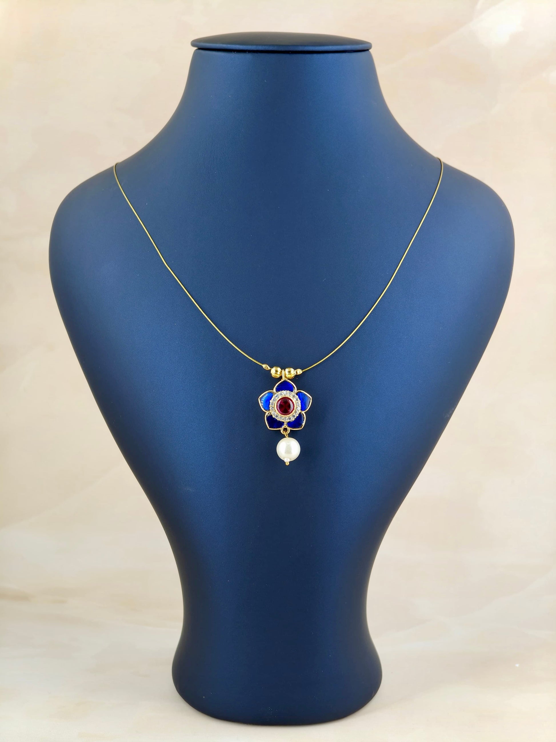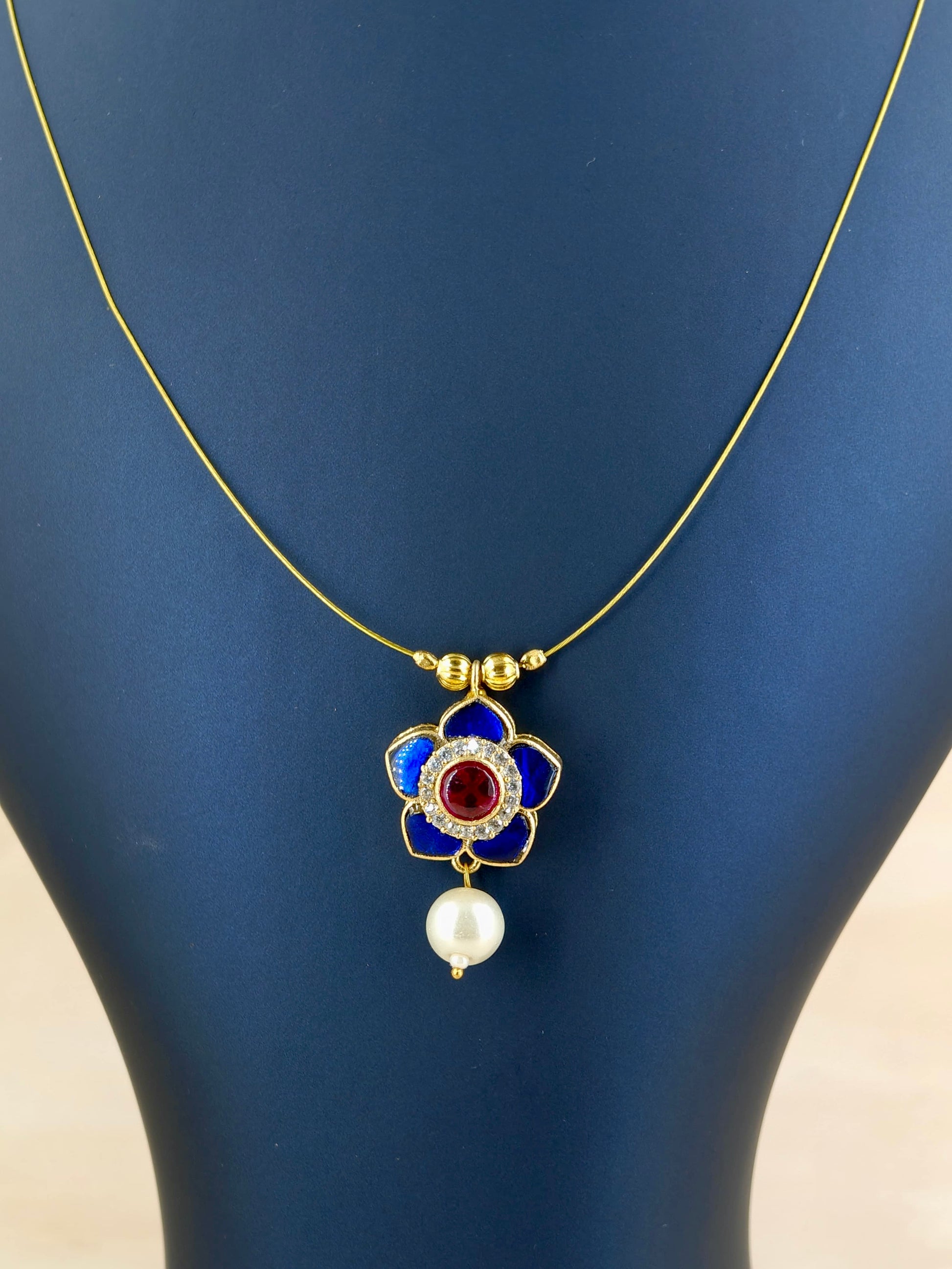Simple Flower Pendant Invisible Necklace Royal Blue & Pink
