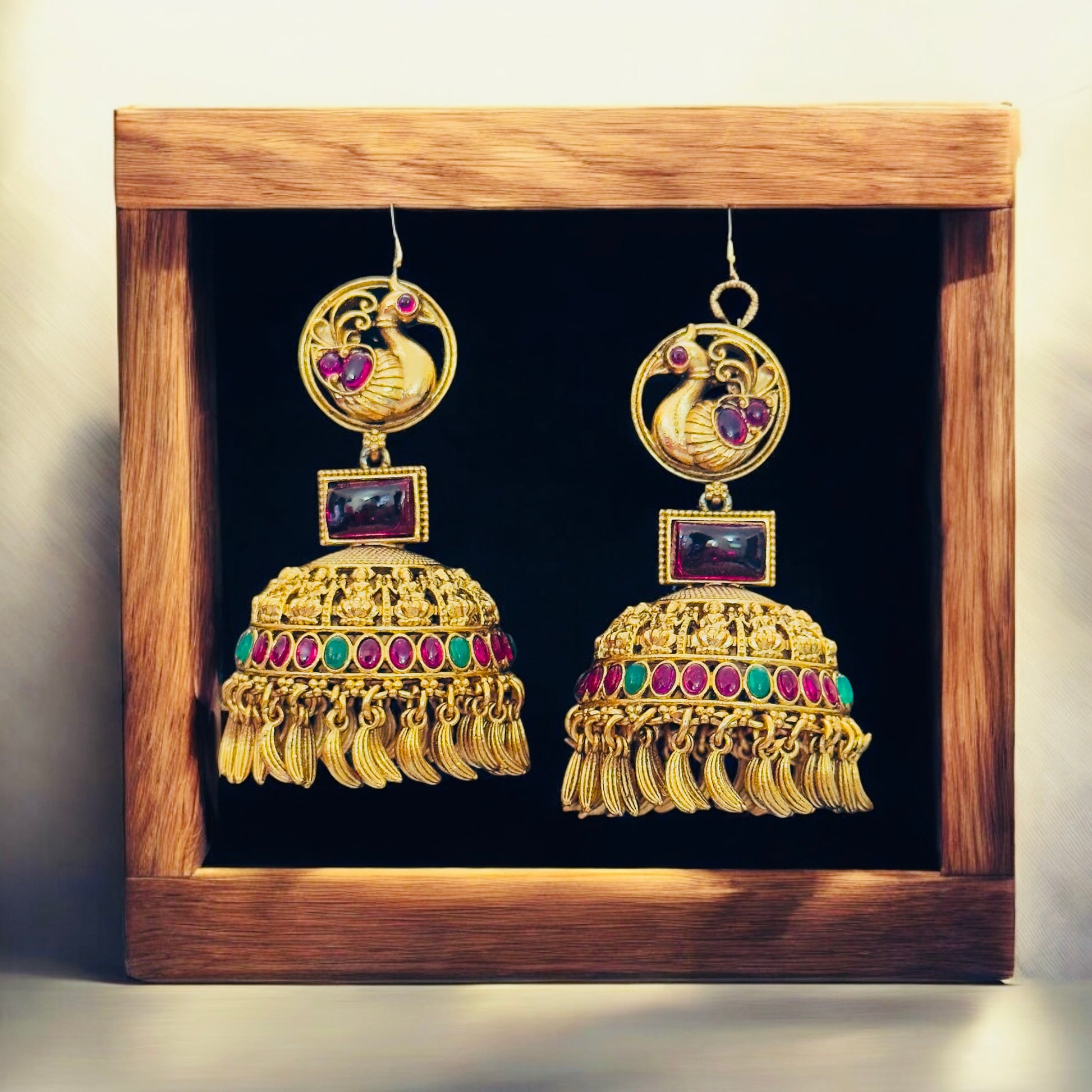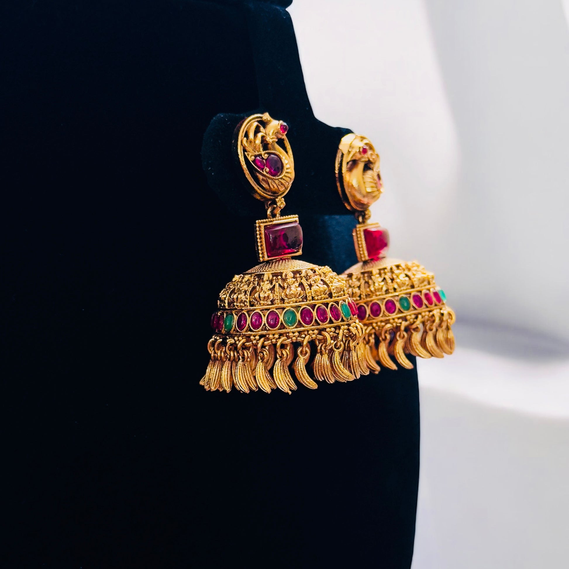 Beautiful Peacock Lakshmi Engraved Bridal Jhumka