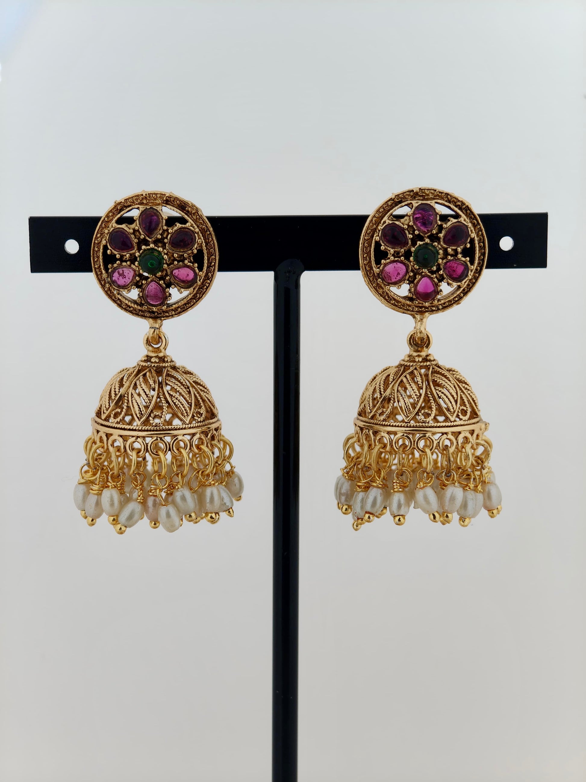 Beautiful Jumka in Ruby and Pearls
