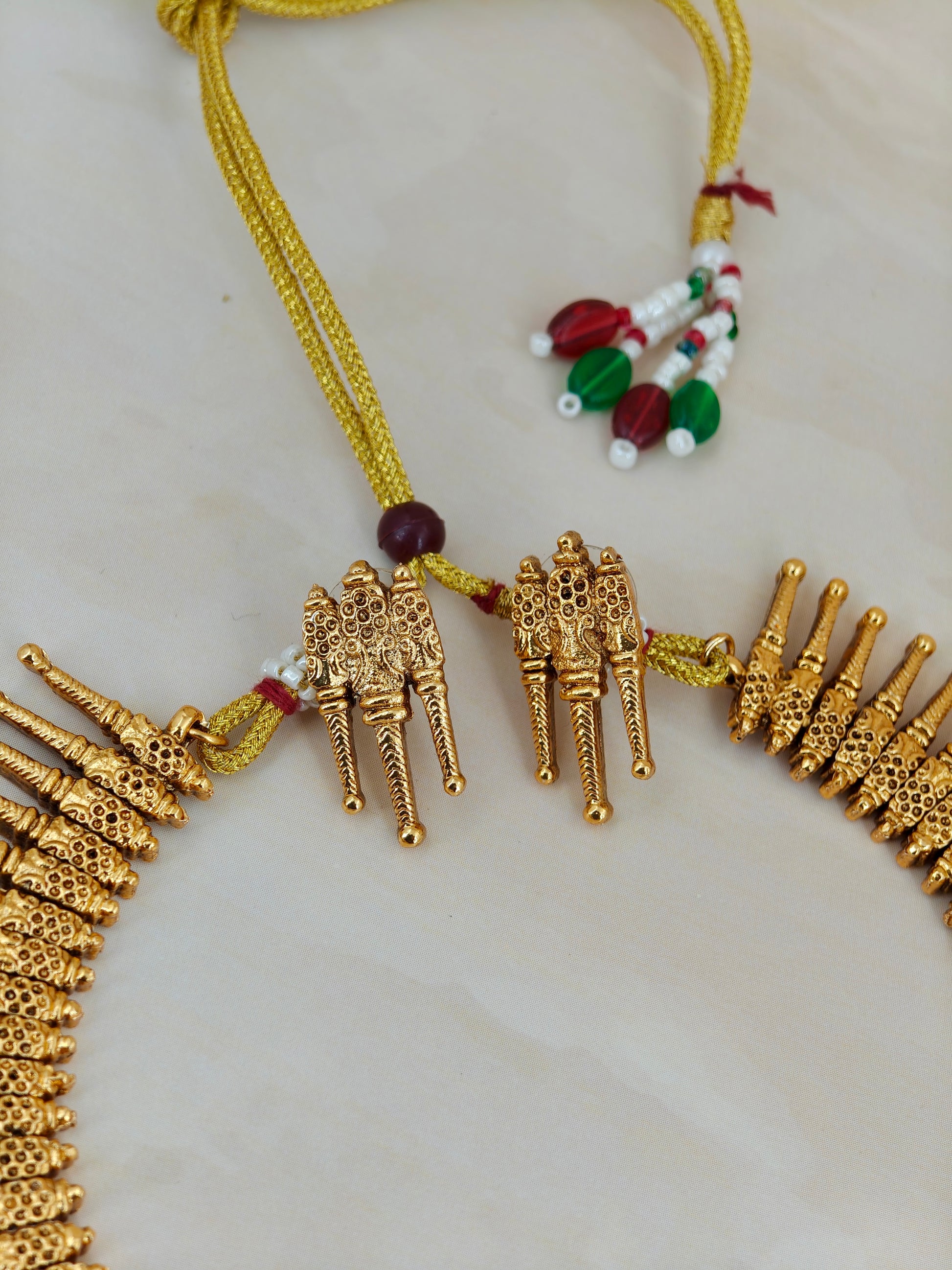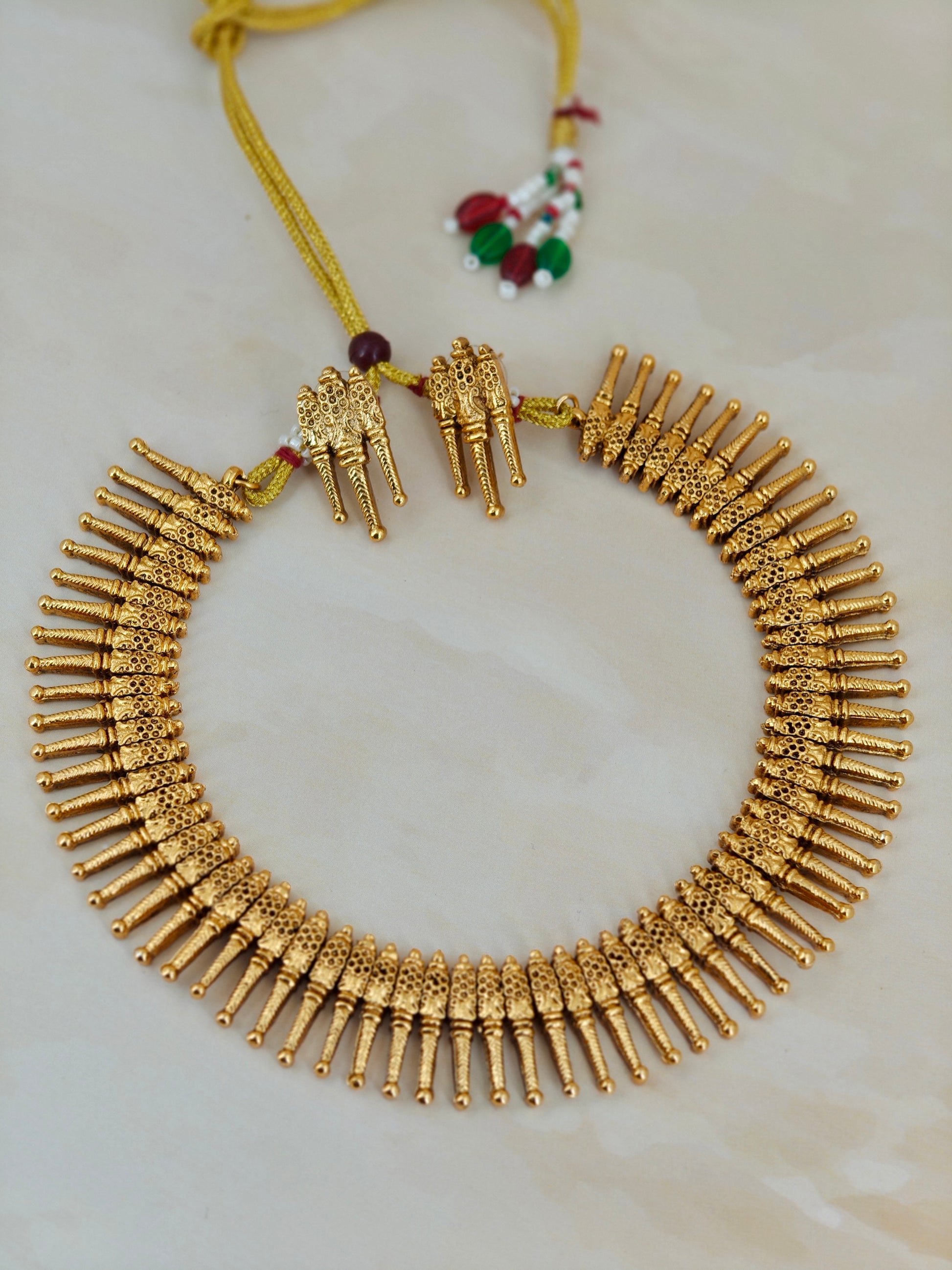 Elevate your ensemble with the Traditional Pichimottu Necklace, expertly crafted to showcase timeless elegance. This necklace reflects rich cultural heritage through its intricate design, making it a perfect accessory for traditional occasions. Its durable construction ensures lasting beauty, while its classic style complements a variety of ethnic outfits, enhancing your overall presence with grace and sophistication.