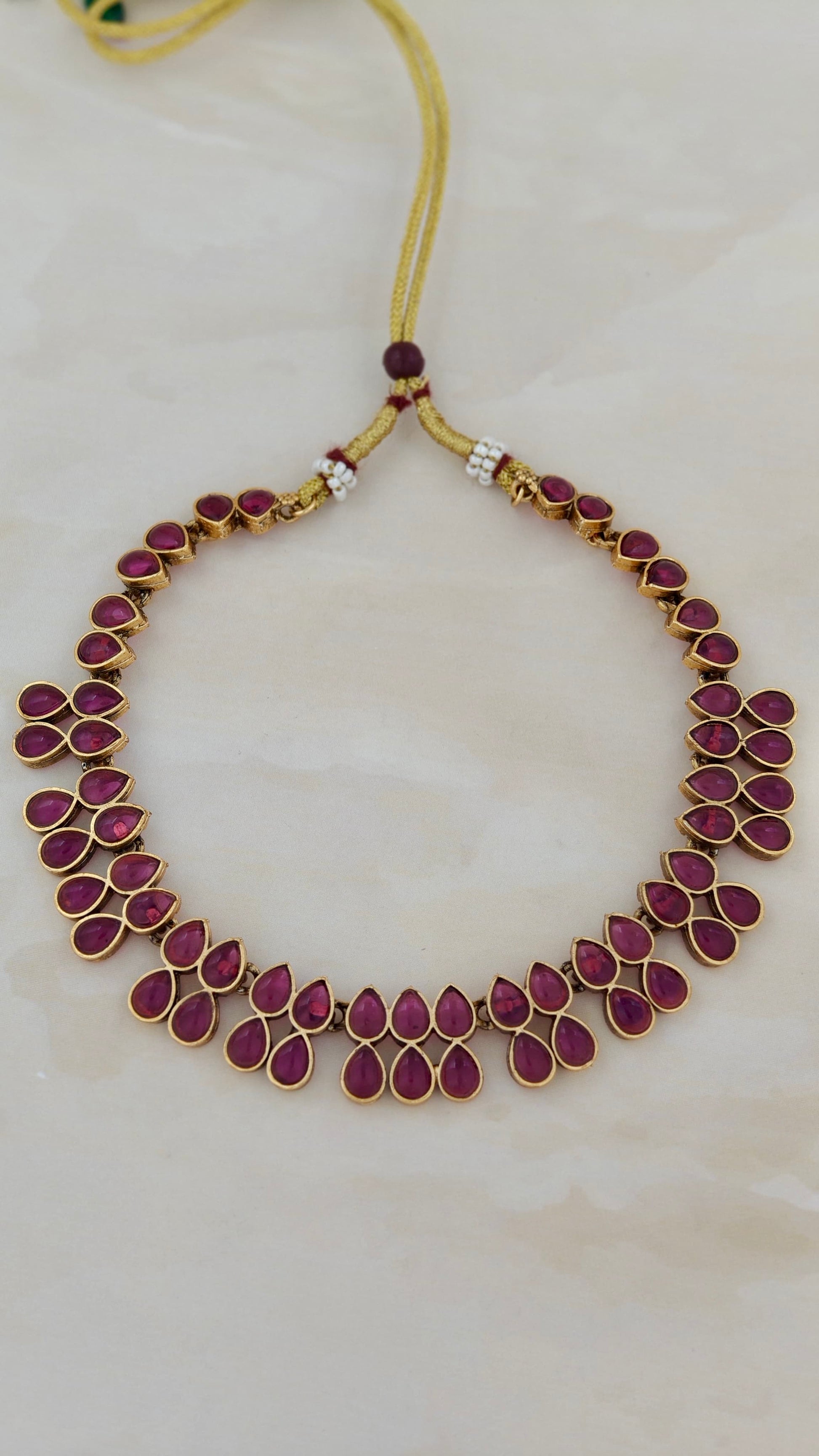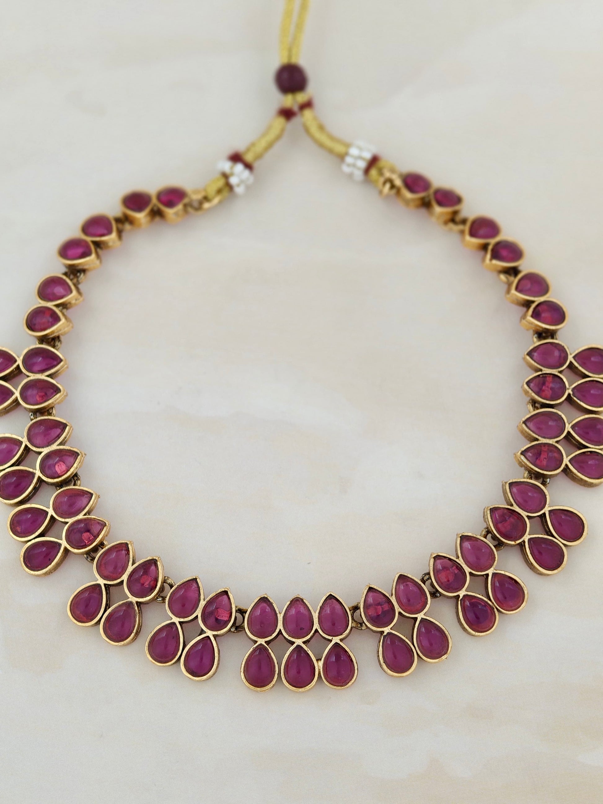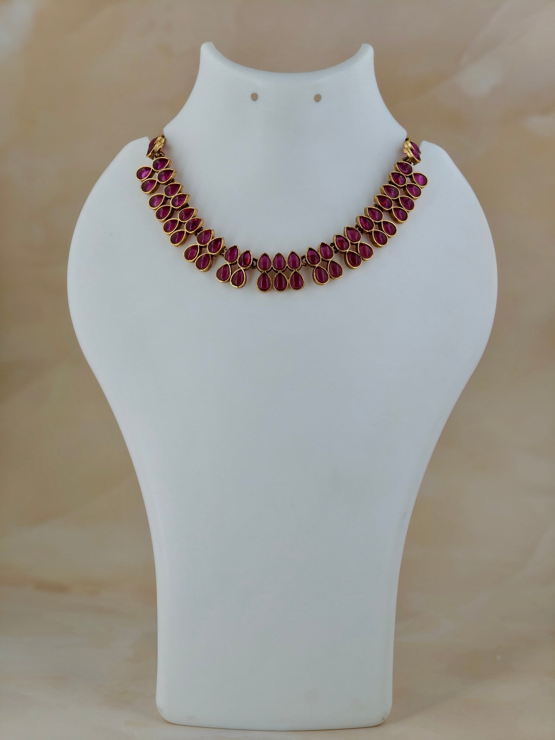 This Beautiful Kemp Stone Necklace in magenta showcases intricate craftsmanship and vibrant stones that add an elegant touch to any outfit. Expertly designed, it blends traditional artistry with a modern palette, making it suitable for both festive occasions and sophisticated everyday wear. Its rich hues and detailed setting highlight the wearer’s refined taste.