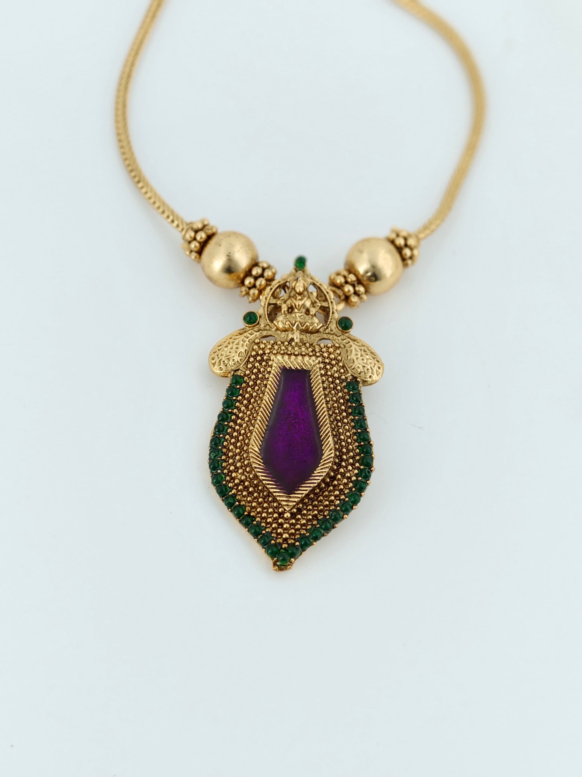 Nagapadam pendant necklaces represent a distinguished choice in traditional Indian jewelry, with the Vadamalli color variant offering a warm, earthy aesthetic. This classic design features the iconic serpent motif, deeply rooted in Hindu and South Indian cultural symbolism. The Vadamalli shade—a rich, burnished tone—complements various skin tones while maintaining the pendant's intricate detailing. Ideal for both ceremonial occasions and everyday wear, this necklace bridges heritage craftsmanship with versatile styling. The pendant's symbolic significance makes it a meaningful addition to any jewelry collection, whether worn as a cultural statement or appreciated for its artisanal quality.