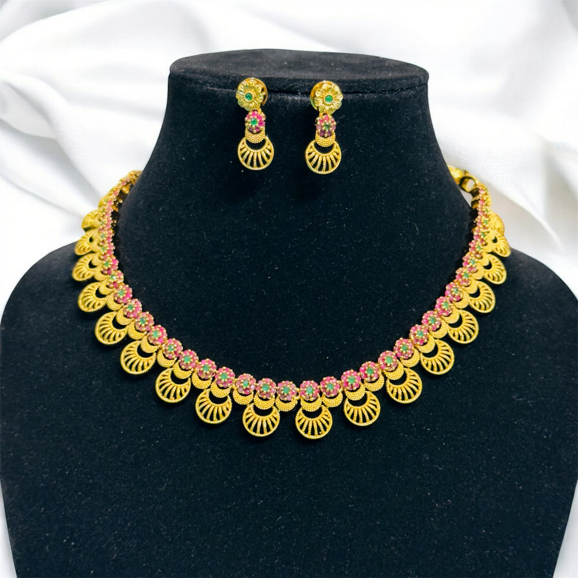 This Simple and Elegant Necklace with Earrings is the perfect accessory for any outfit. Made with high-quality materials, it adds just the right amount of glamour and sophistication to any look. The simple design allows it to be worn for any occasion, making it a versatile and must-have piece for your jewelry collection.