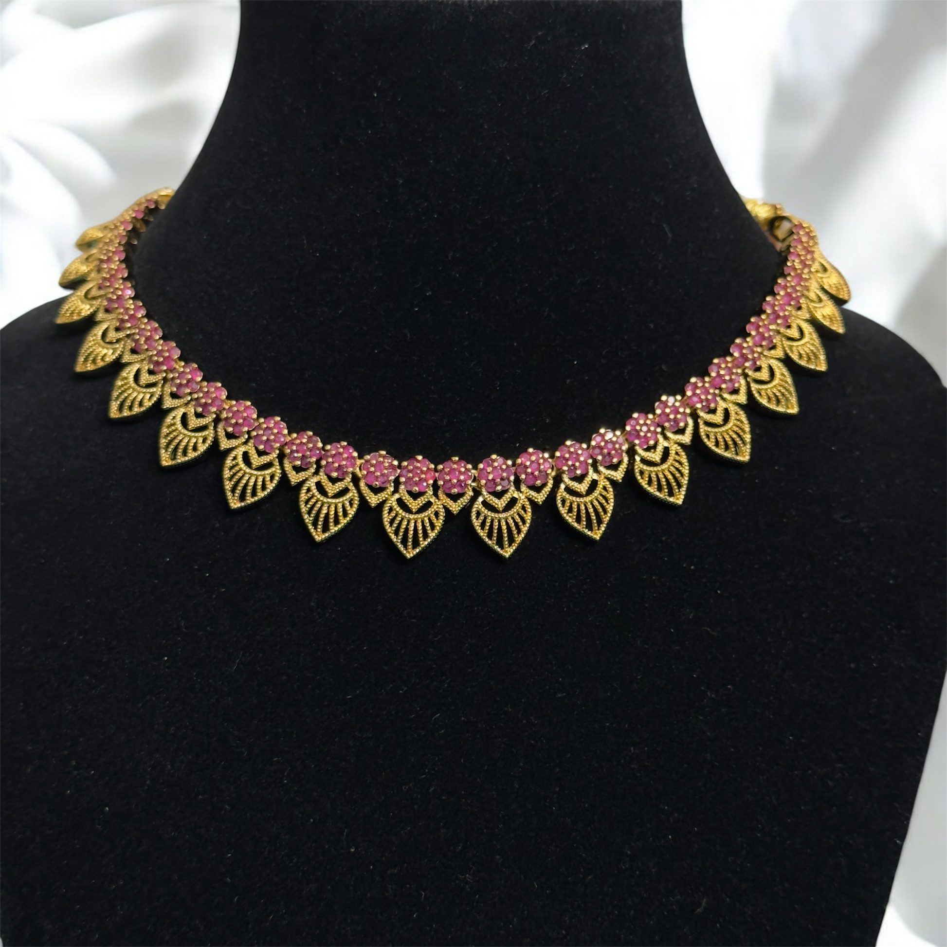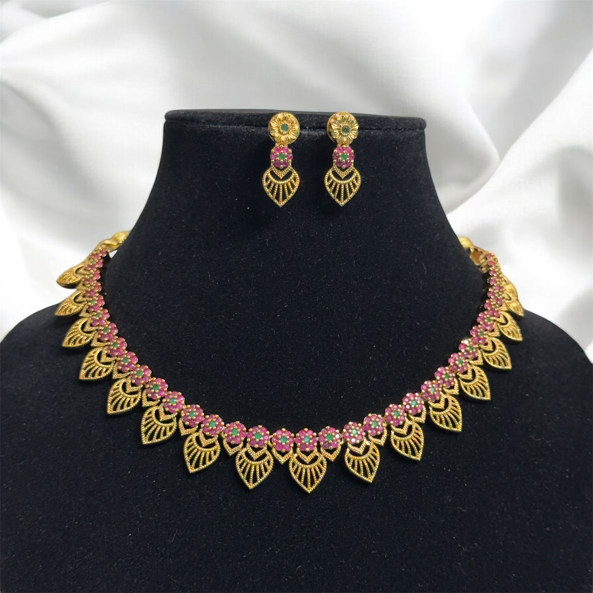 This simple and elegant necklace and earring set showcases a delicate leaf design. Made with high-quality materials, it adds a touch of sophistication to any outfit. Perfect for any occasion, this set will make you stand out with its timeless style.