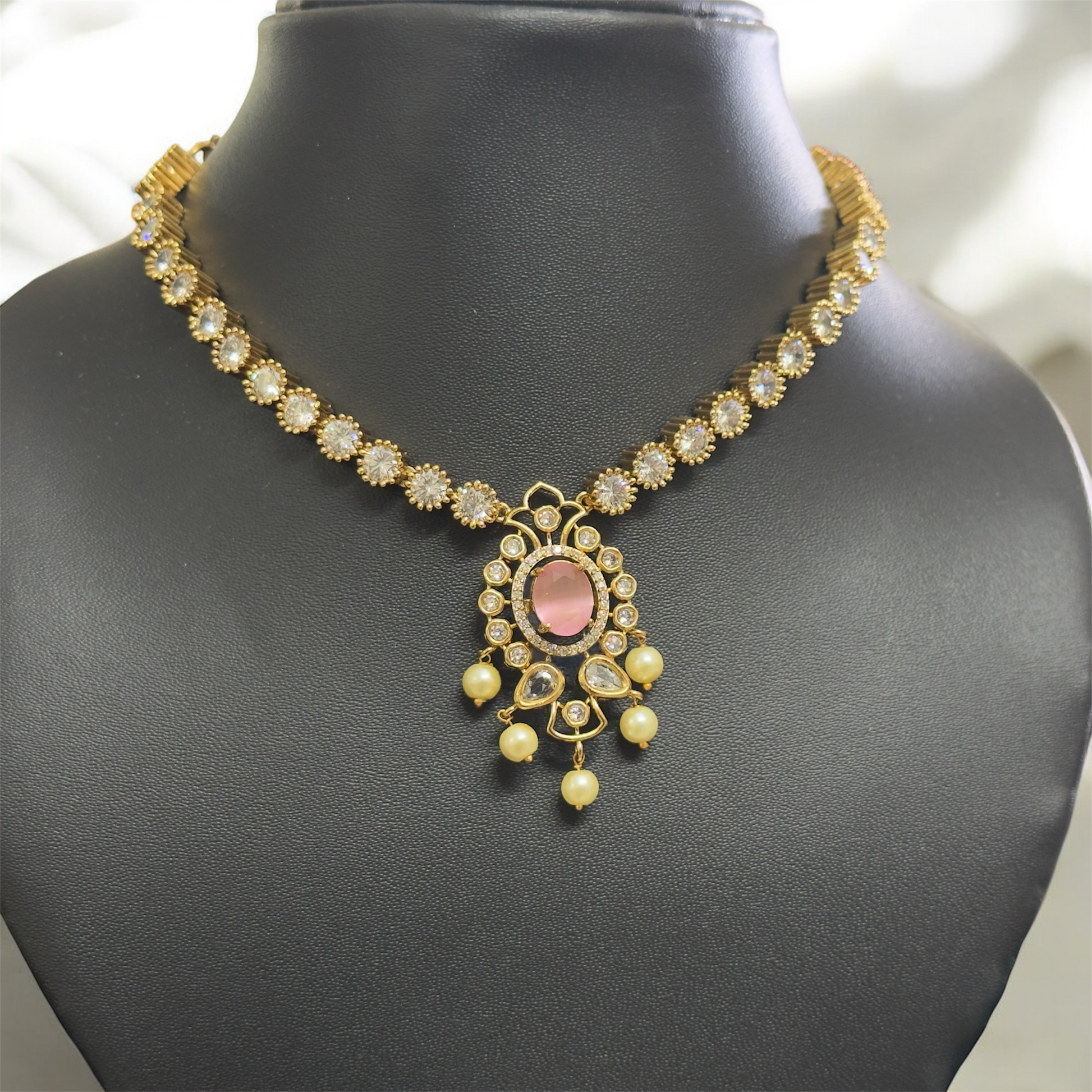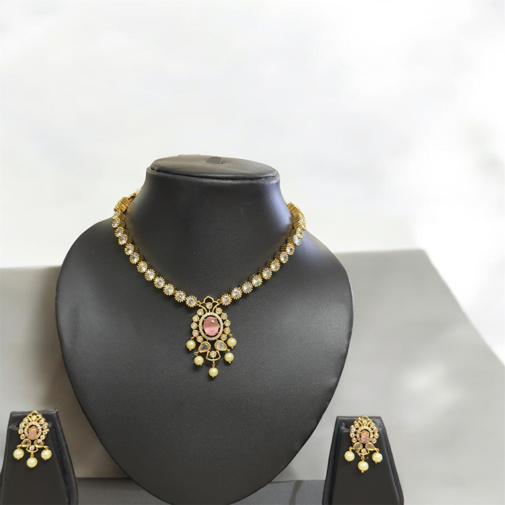 This Simple AD Stone Changeable Necklace with Earrings Set offers a versatile and elegant addition to any jewelry collection. The set boasts stunning AD stones that can easily be interchanged to suit any outfit, providing endless possibilities for effortless accessorizing. Upgrade your style with this sophisticated and timeless set.
