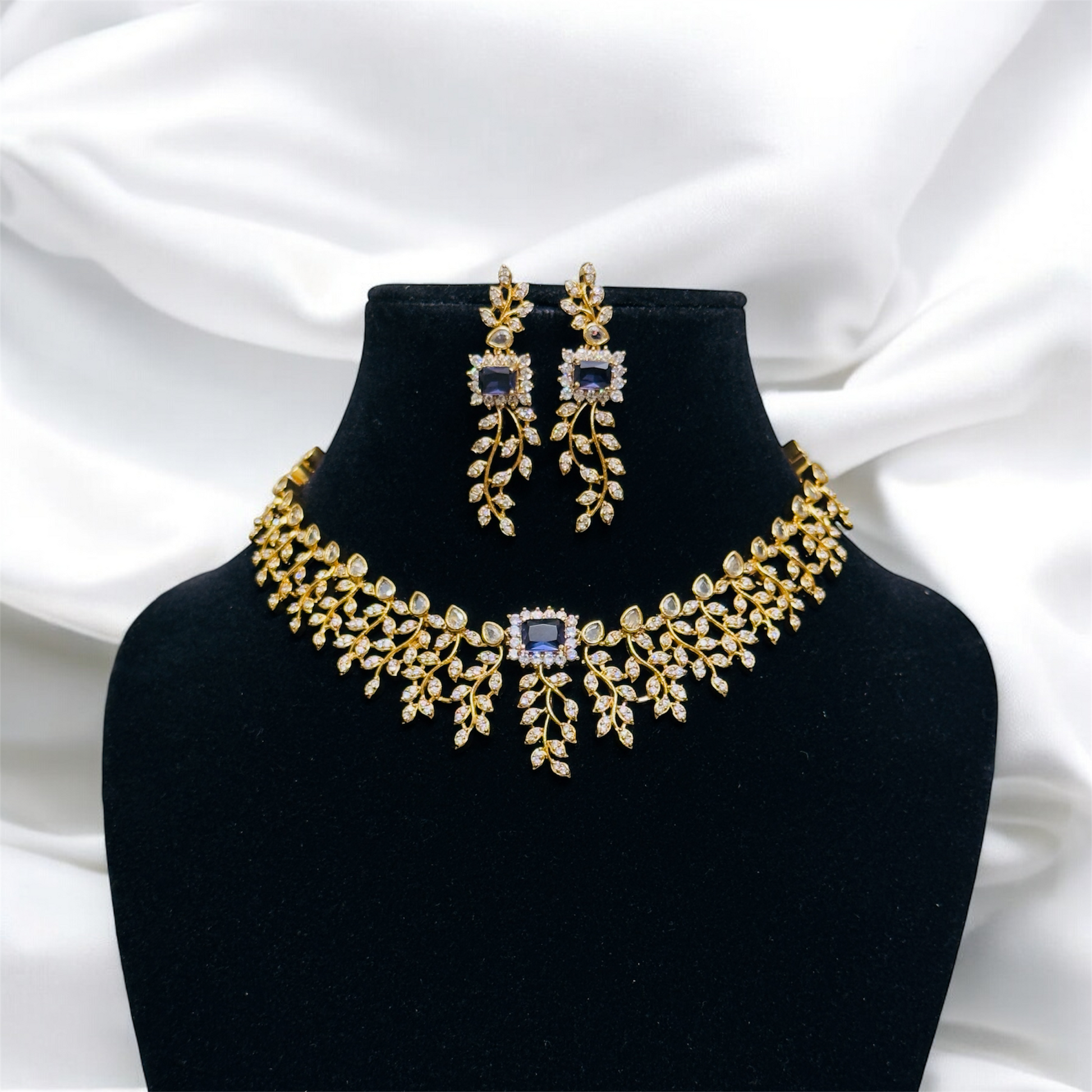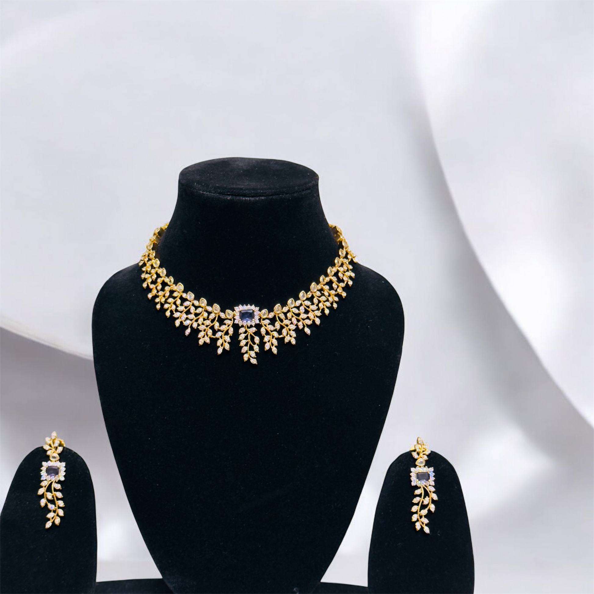 This Stunning AD Stone Necklace & Earrings Set is a must-have for any formal occasion. The intricate design and high-quality AD stones exude elegance and sophistication. Made with precision and attention to detail, this set is sure to elevate any outfit and make you stand out from the crowd. Add this set to your jewellery collection for a touch of glamour.