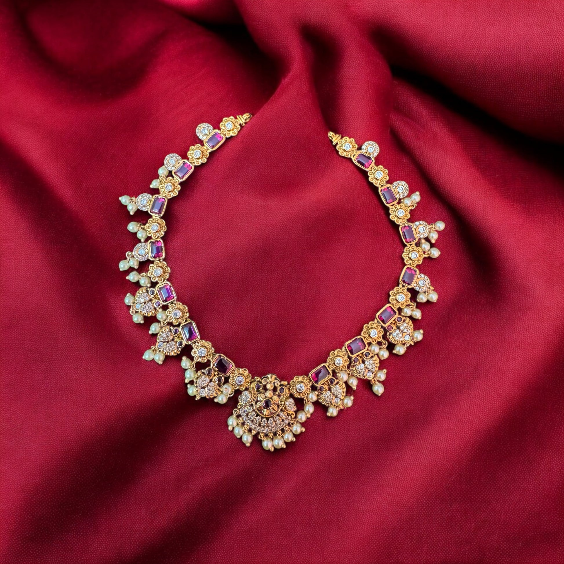 This elegant flower design necklace and earrings set is the perfect addition to any outfit. The delicate flower design adds a touch of sophistication while the set itself is versatile and can be dressed up or down. With this set, you'll always feel polished and put-together.