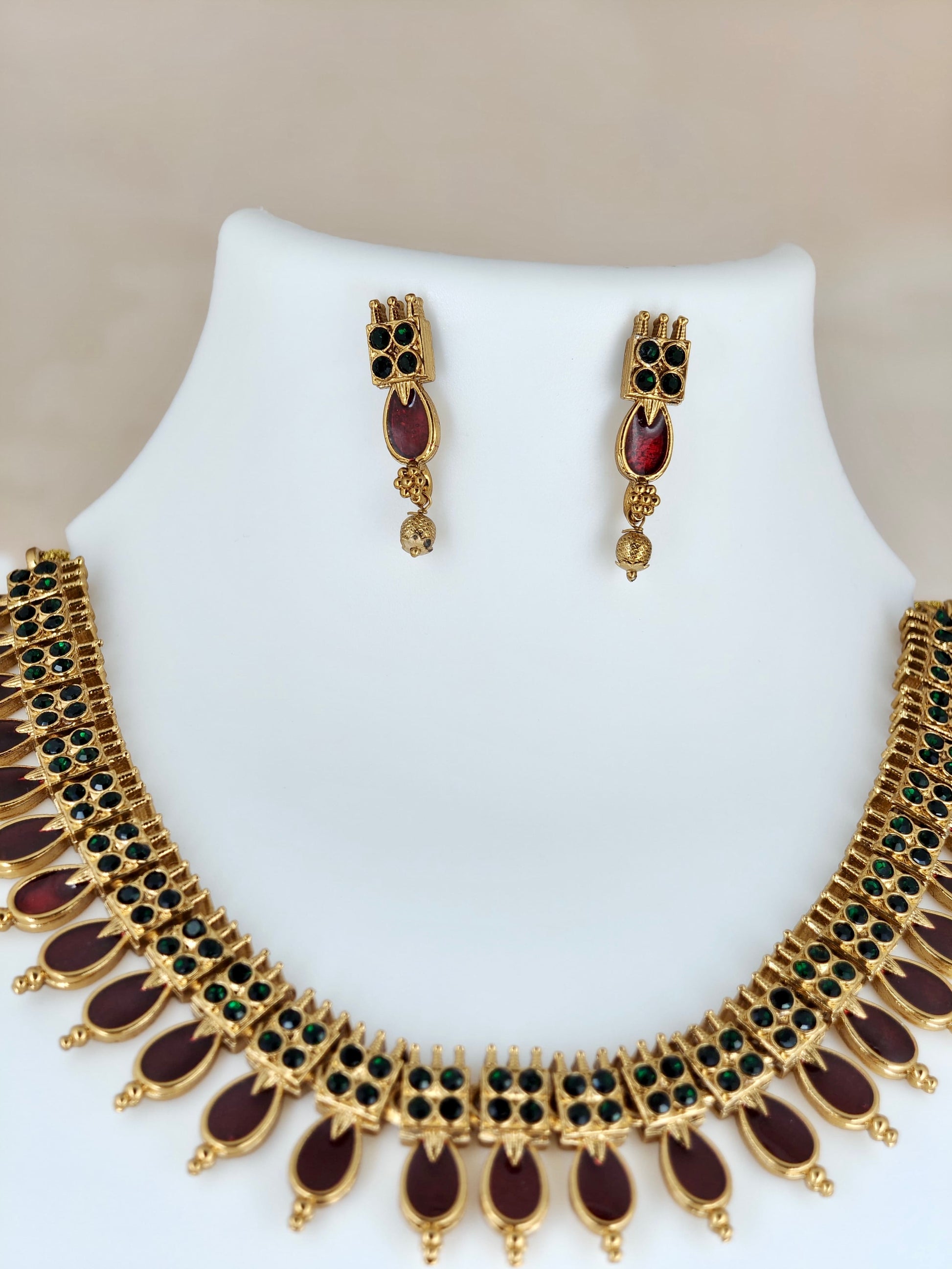 The Beautiful Nagapada Necklace showcases intricate craftsmanship inspired by traditional motifs. Its detailed design captures the essence of cultural elegance, making it a distinguished accessory for special occasions. Expertly crafted, this necklace offers both aesthetic appeal and a timeless statement piece for your collection.