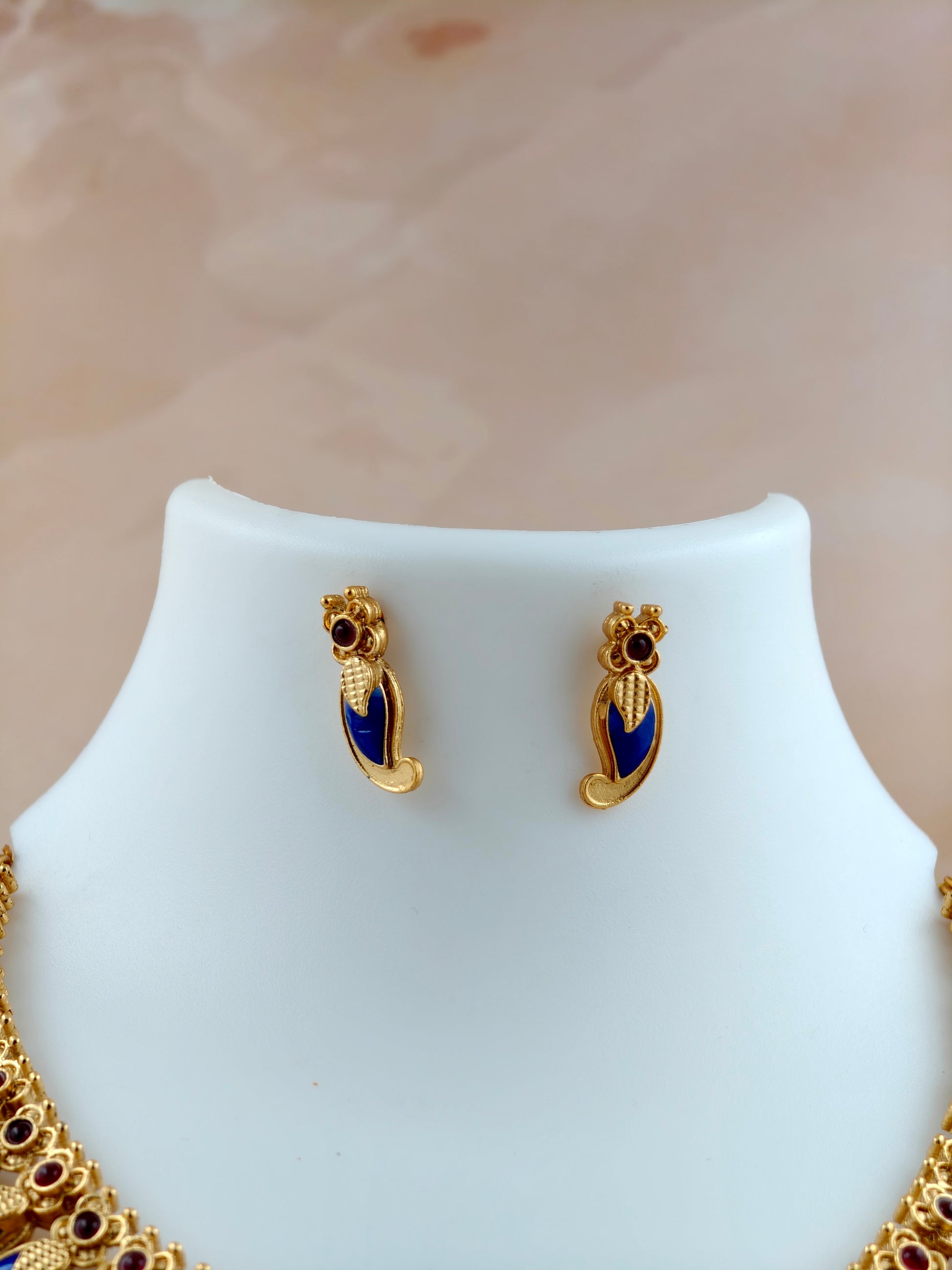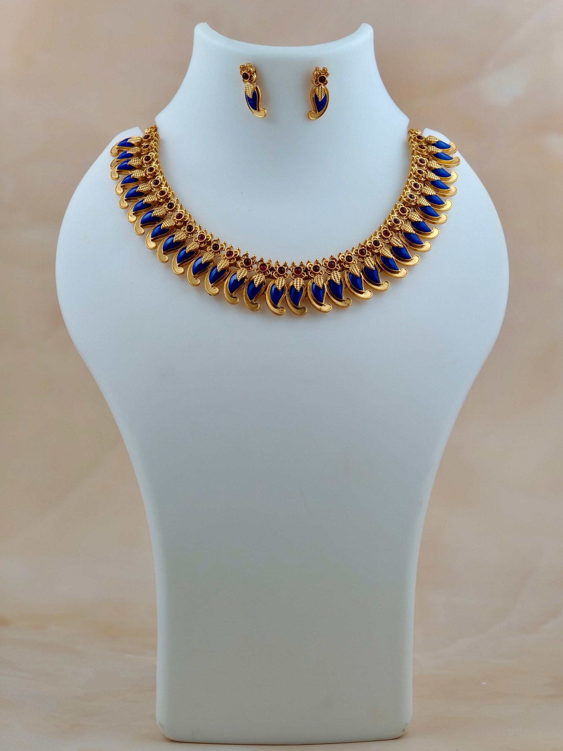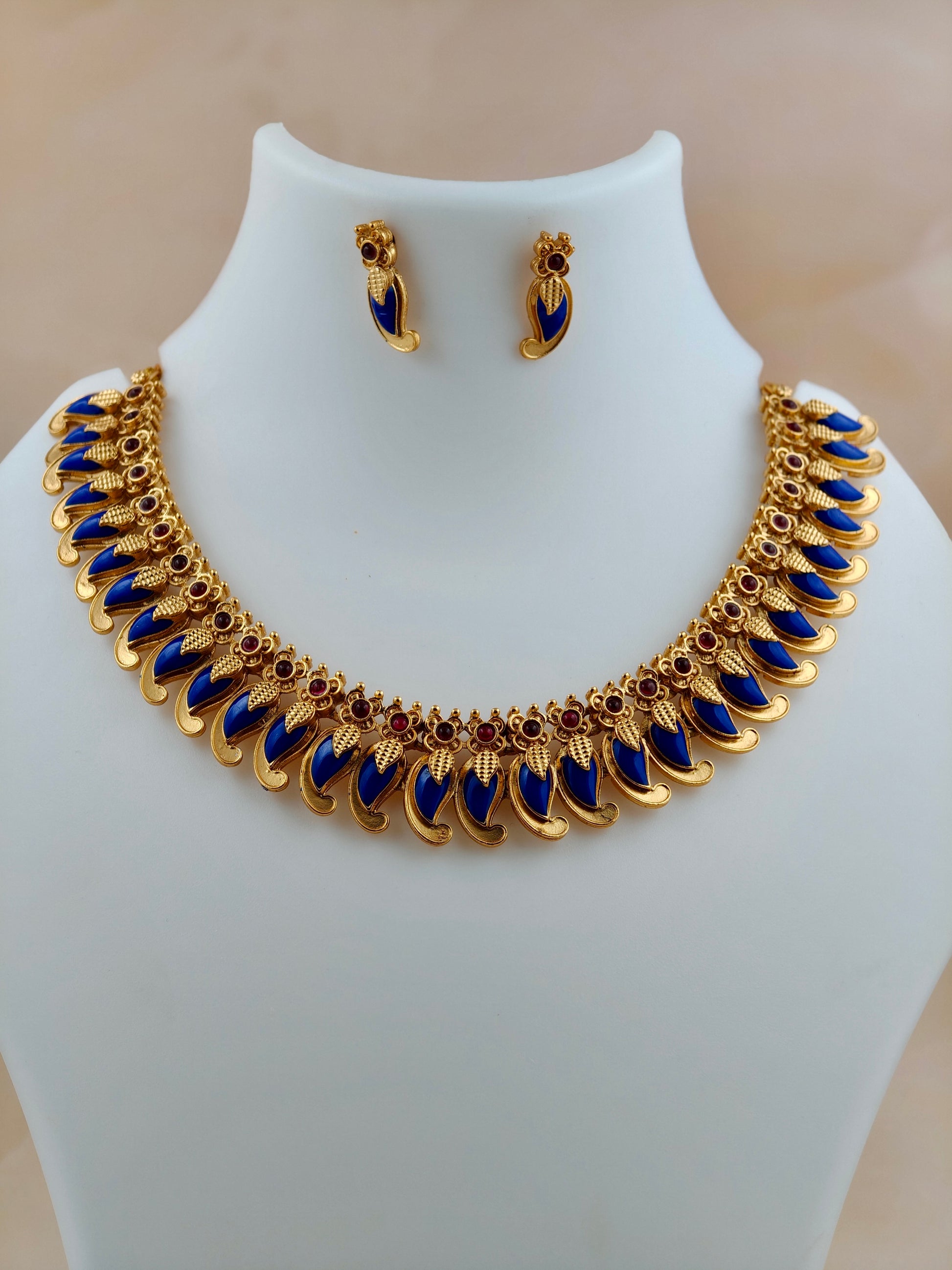 Elevate your style with the Premium Mango Necklace in Royal Blue, a sophisticated accessory designed for discerning tastes. This necklace features a striking royal blue hue that complements both traditional and contemporary outfits. Crafted with attention to detail, it offers a refined look that enhances your ensemble with elegance and charm. Ideal for special occasions or adding a touch of luxury to everyday wear, this piece combines quality and timeless appeal.
