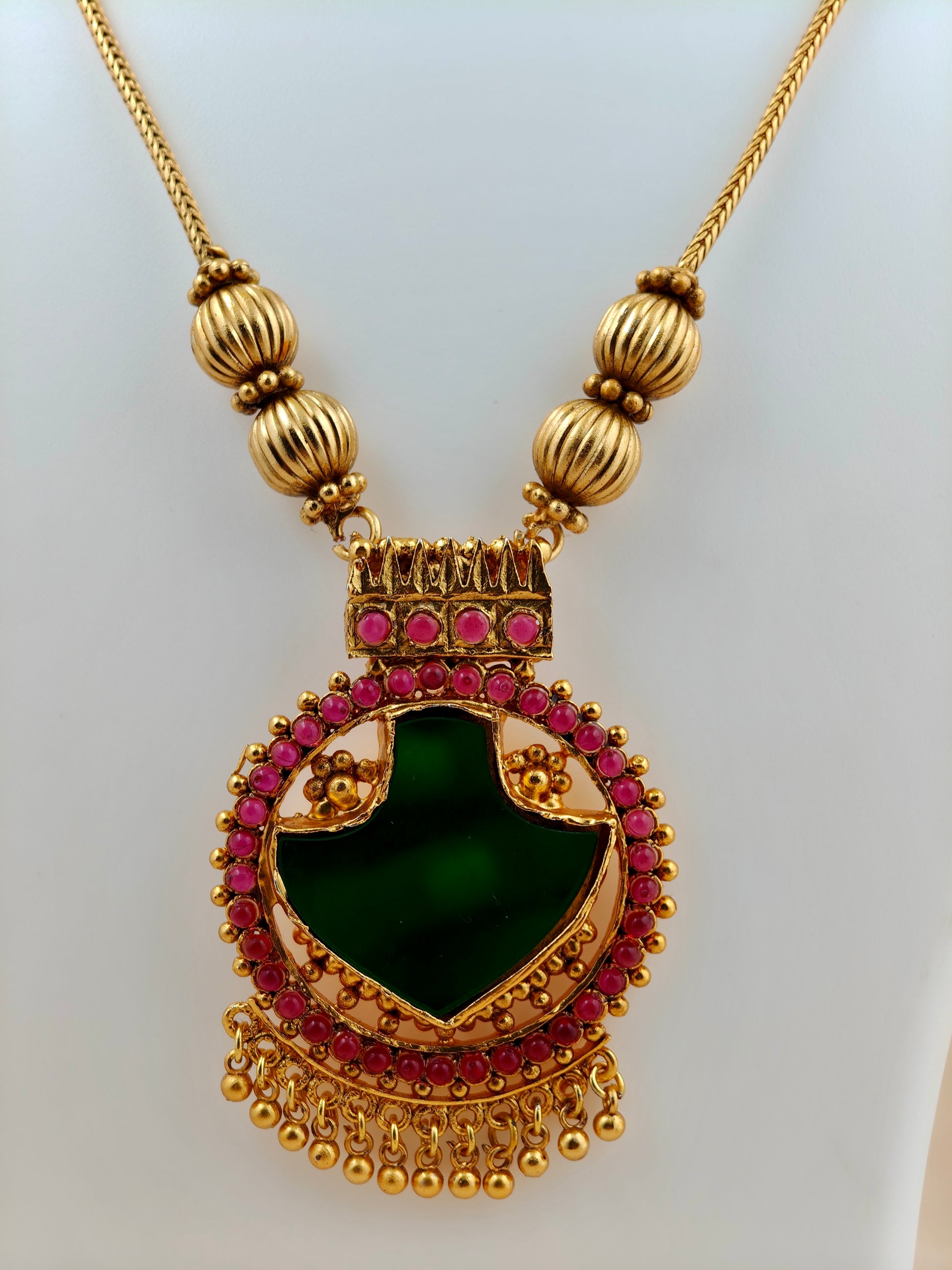 The Trending Paalakka Necklace showcases exquisite craftsmanship inspired by traditional designs, making it a sophisticated accessory for any occasion. Its elegant structure enhances your neckline with a subtle yet striking presence, perfect for those who appreciate timeless style with a modern touch. Crafted to complement both casual and formal attire, this necklace offers versatility and enduring appeal.