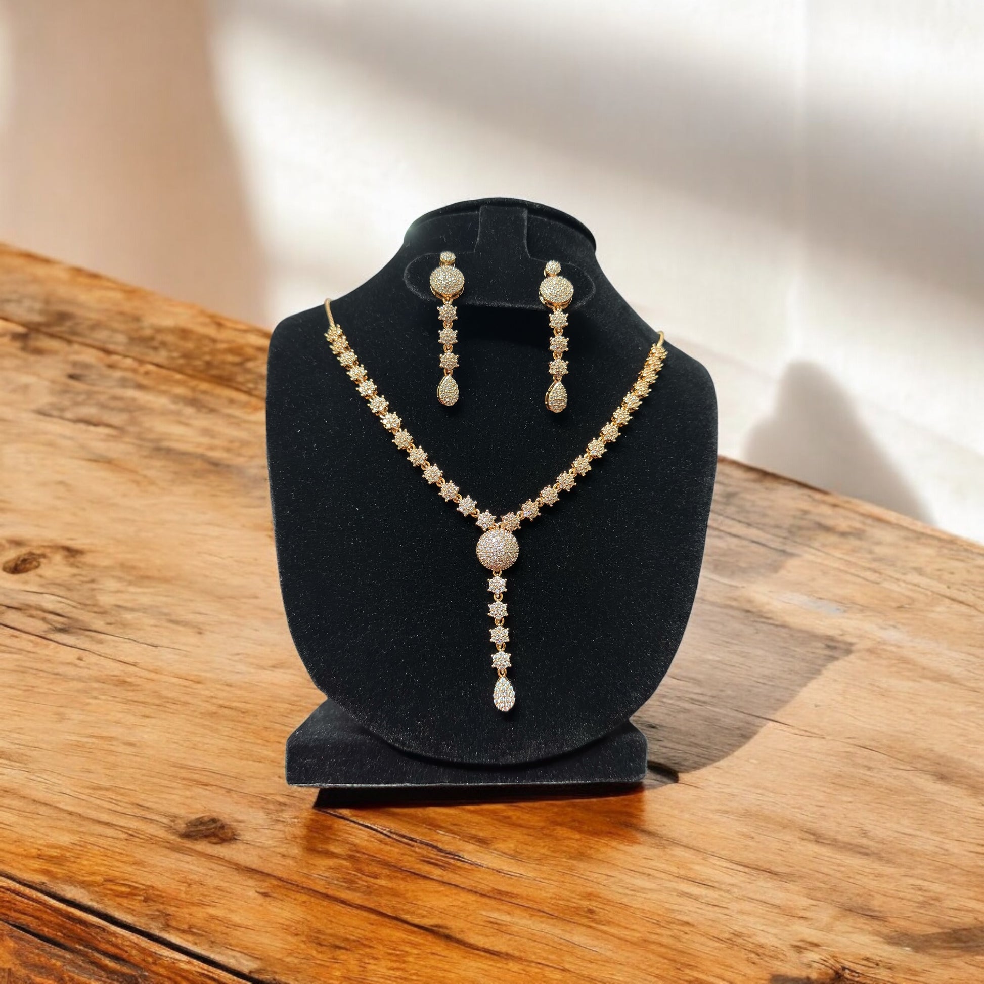 Sparkling A D Stone Rose Gold Necklace & Earrings Set