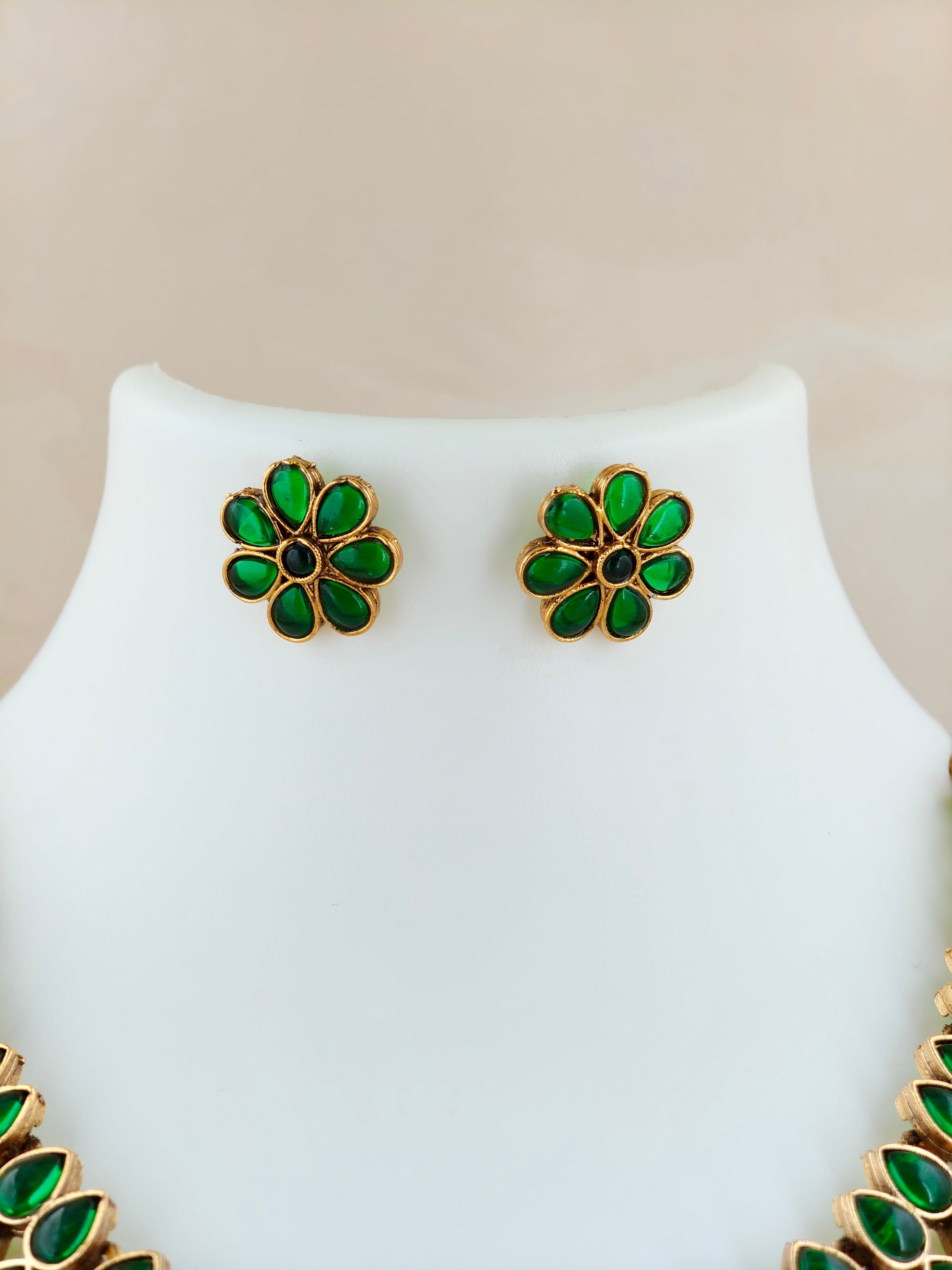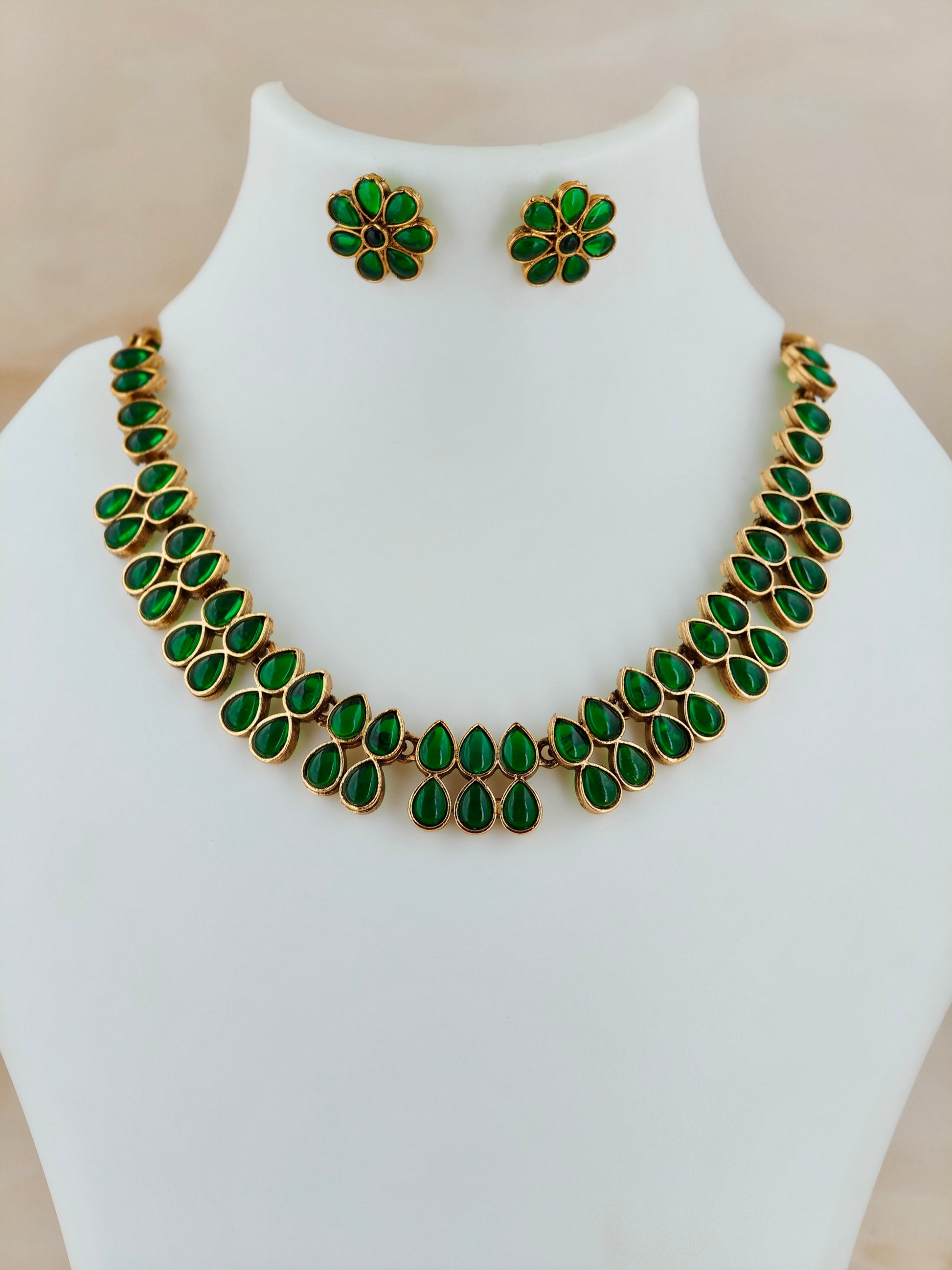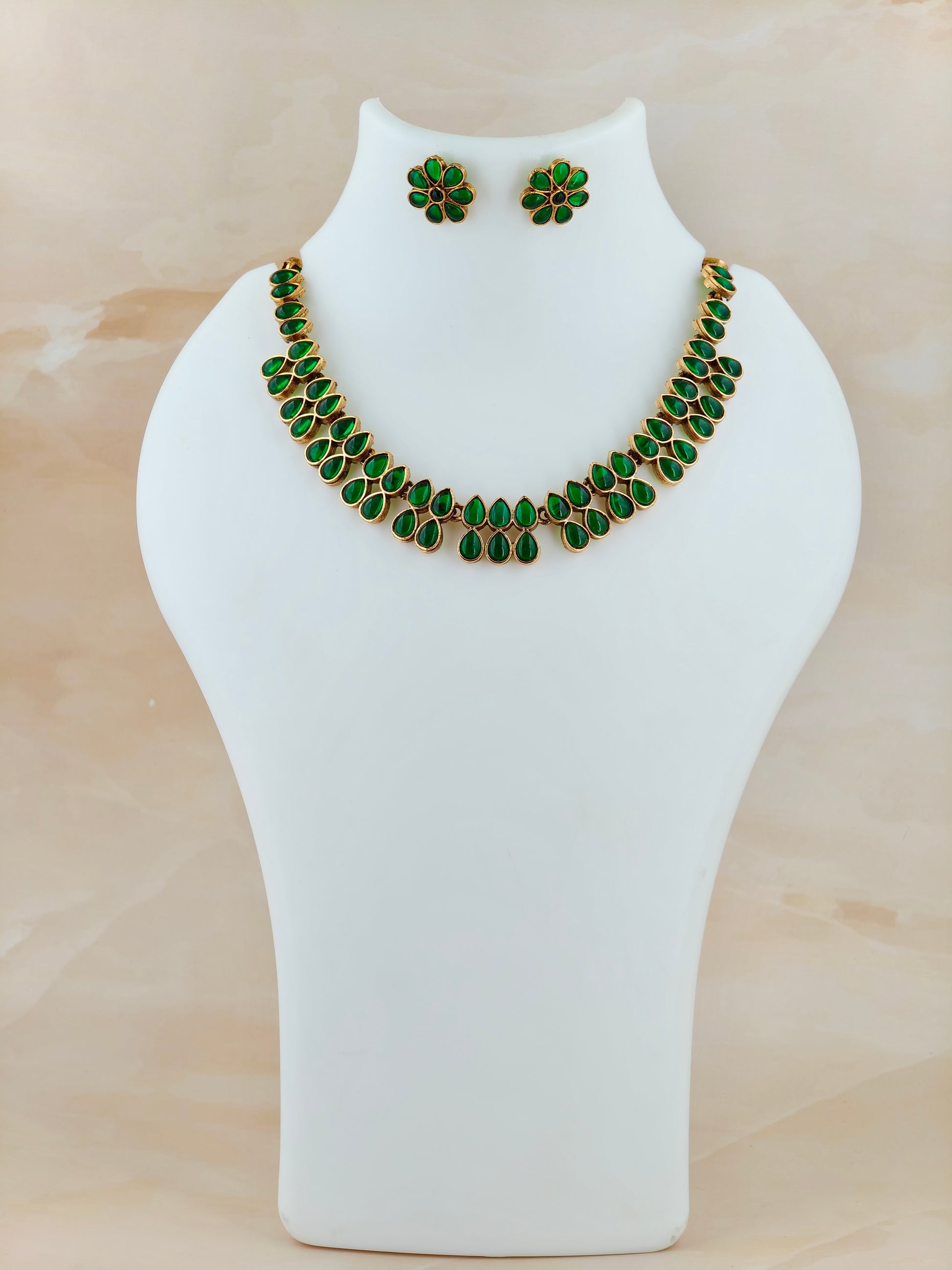 Elevate your collection with this Beautiful Kemp Stone Necklace in Green, expertly crafted to showcase vibrant kemp stones that add a rich, traditional charm. Its intricate design highlights the natural beauty of each stone, making it a perfect accessory for both festive occasions and elegant everyday wear. This necklace combines timeless craftsmanship with a striking green palette, offering a sophisticated statement piece that complements a variety of styles.