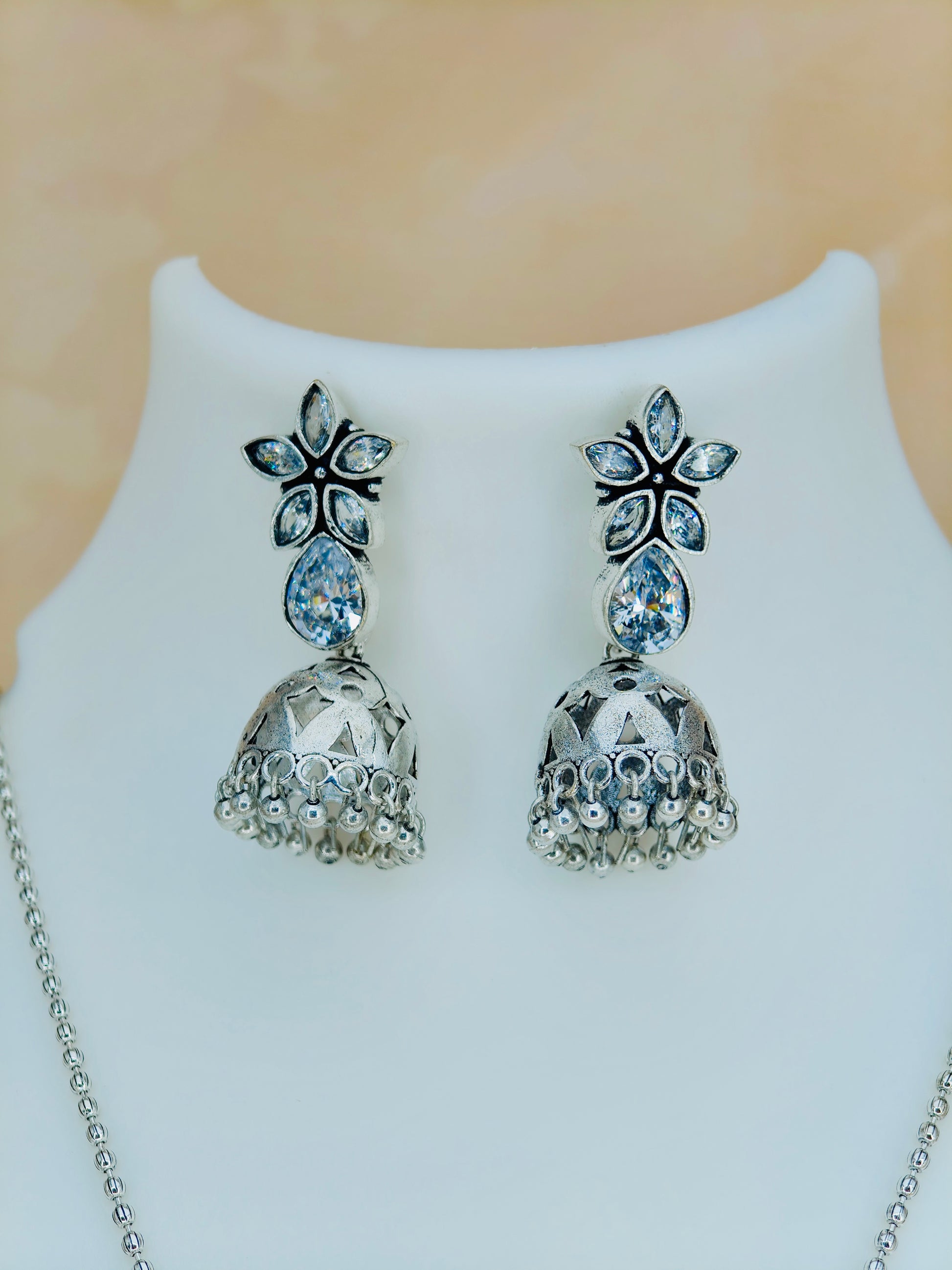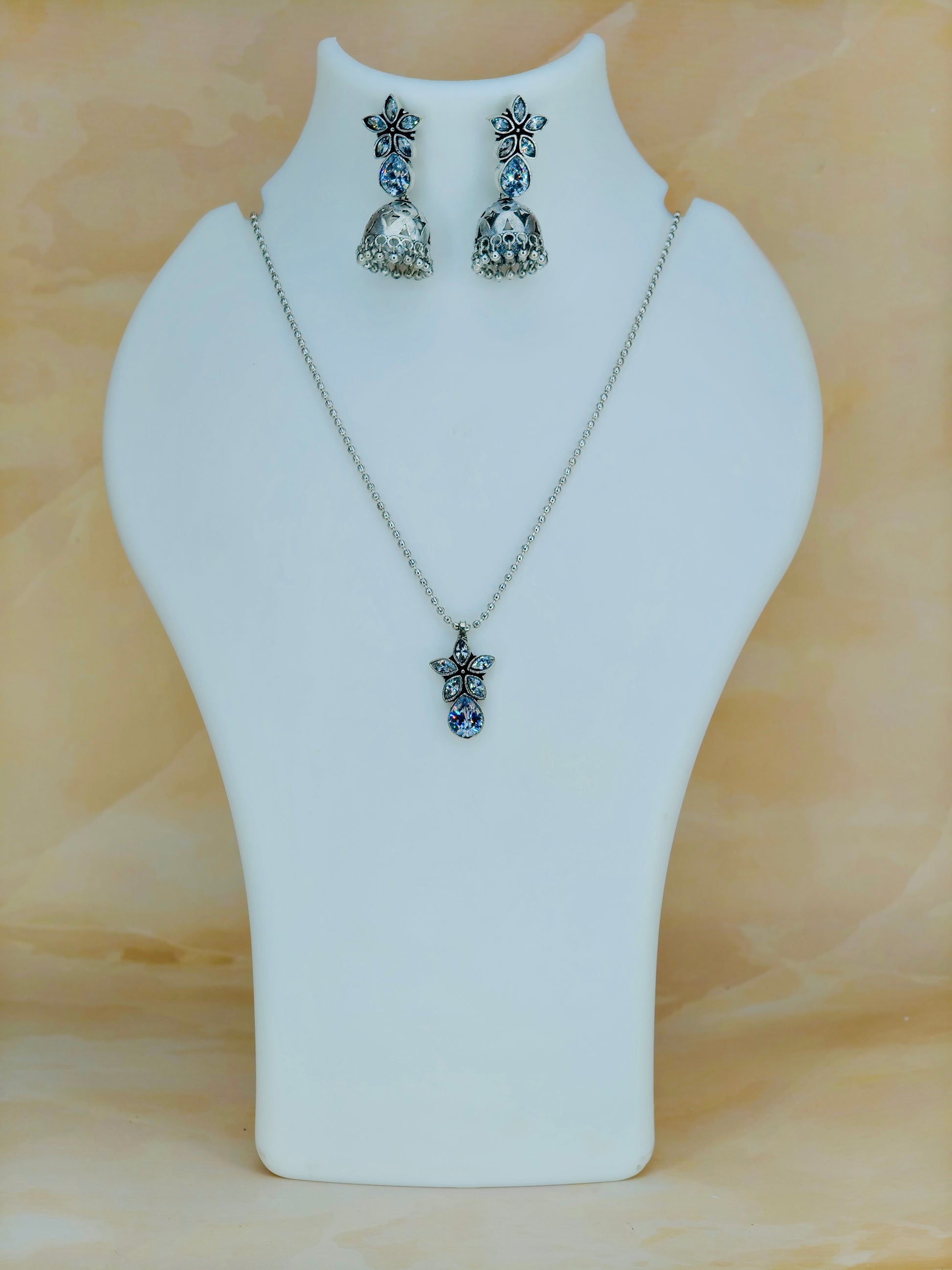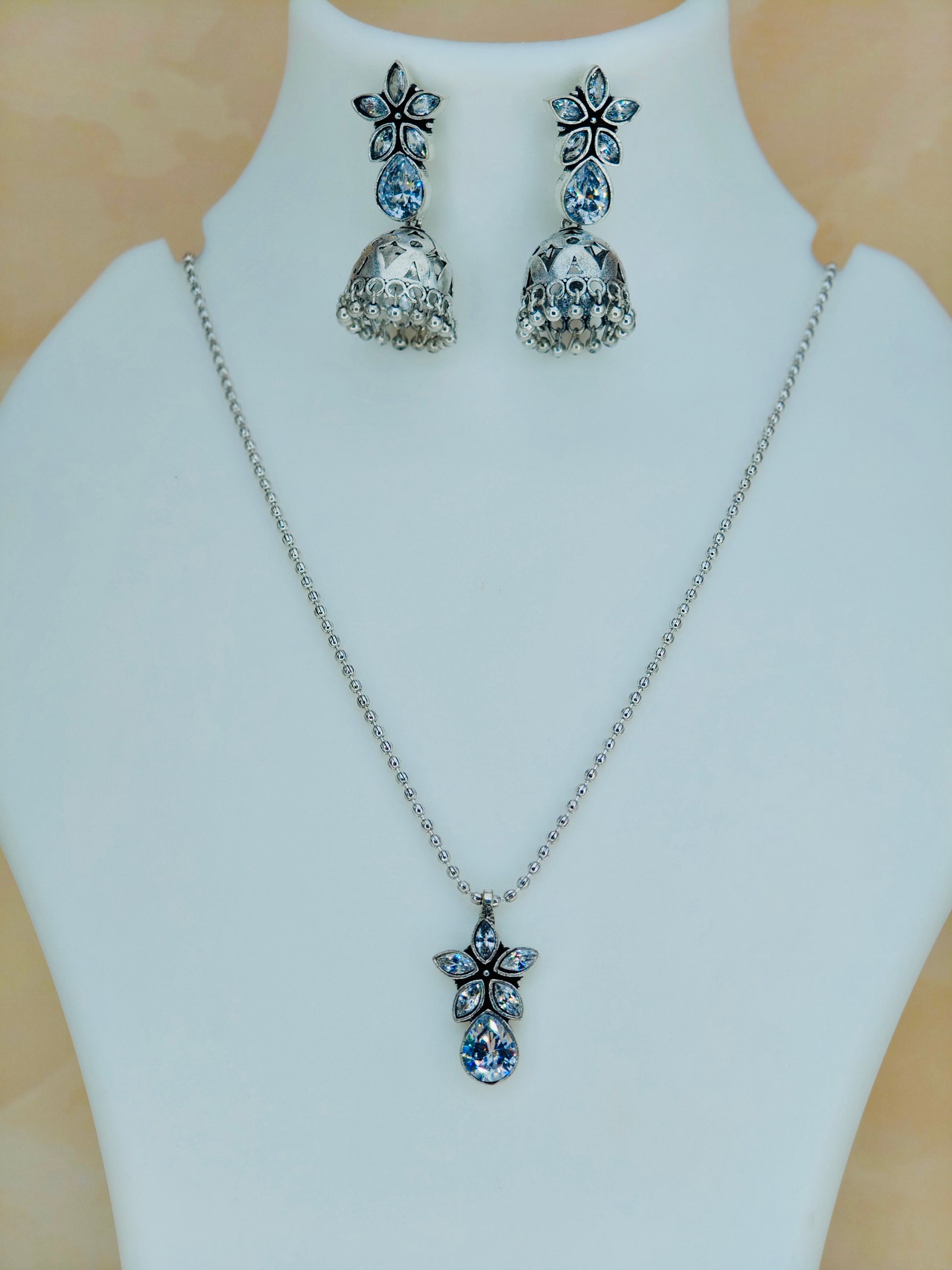This Simple Oxidised Set in White offers a timeless elegance with its classic oxidised finish. Crafted to enhance any outfit, it provides a subtle yet sophisticated look ideal for everyday wear or special occasions. Expertly designed for durability and style, this set combines traditional charm with modern simplicity.