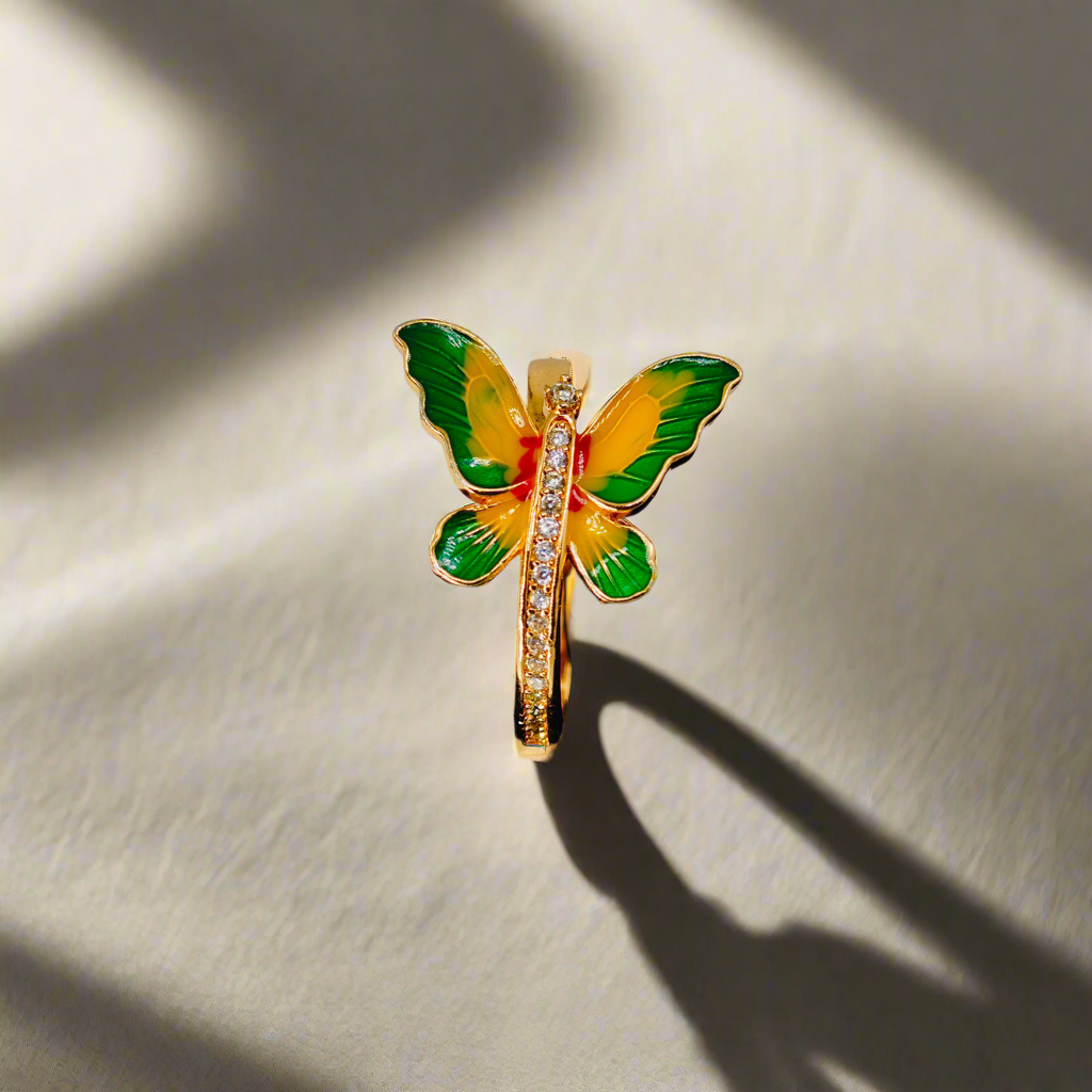 Elevate your style with our exquisite Beautiful Meenakari Butterfly Ring. Hand-crafted with intricate Meenakari work, this ring showcases a stunning butterfly design that will make a statement. Made with high-quality materials, our ring is a true masterpiece that combines beauty and quality. Complete your look with this elegant and unique piece.