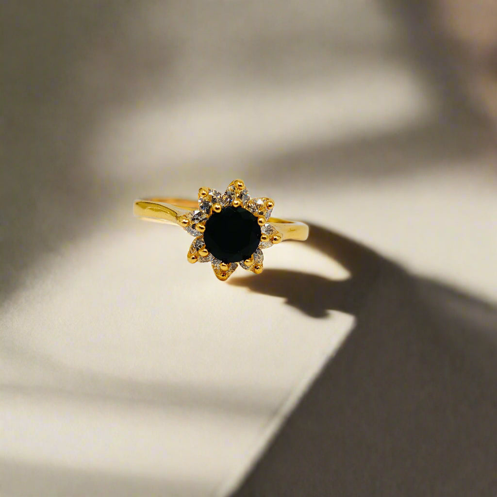 Expertly crafted with premium A D stones, this stunning ring adds a touch of elegance to any outfit. Each stone is carefully placed for maximum sparkle, making it a perfect statement piece for any occasion. Elevate your style with this high-quality, timeless ring.